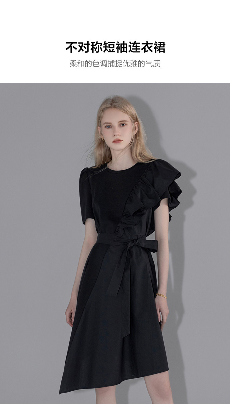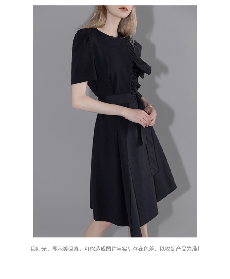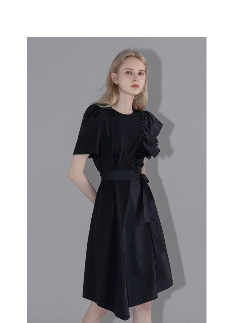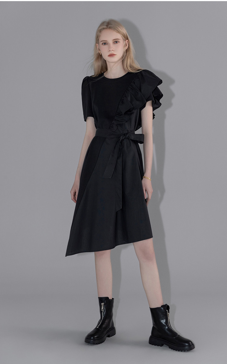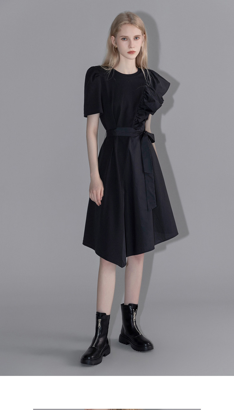 商品名称:【针织不规则a字裙】夏圆领短袖荷叶边连衣裙 428225