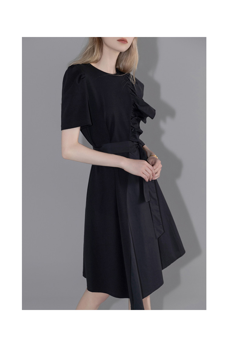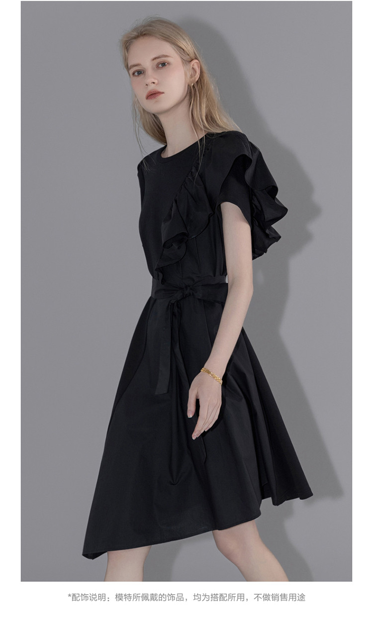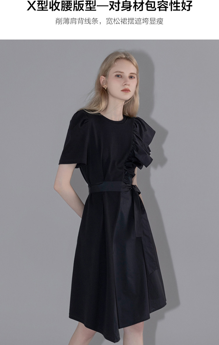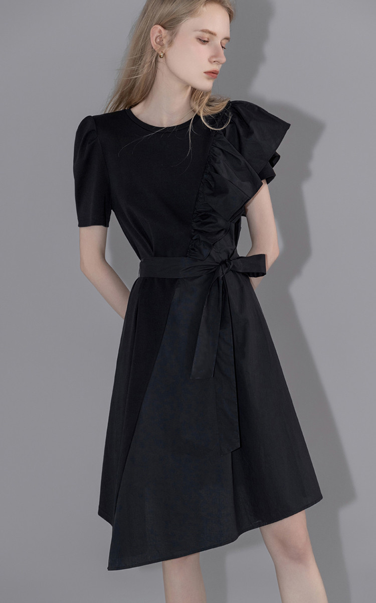 商品名称:【针织不规则a字裙】夏圆领短袖荷叶边连衣裙 428225