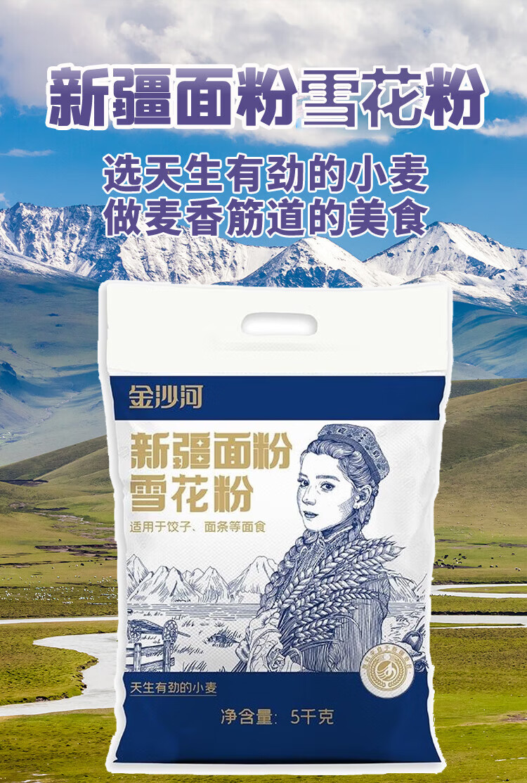 【京东/顺丰配送】金沙河新疆面粉雪花粉5kg(预售,预计5月15日后发货)