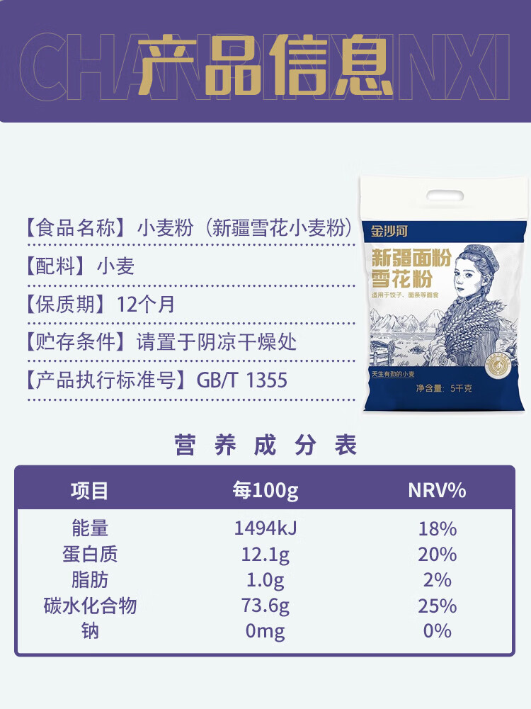 商品名称:【京东/顺丰配送】金沙河新疆面粉雪花粉5kg(预售,预计5月15日后发货)