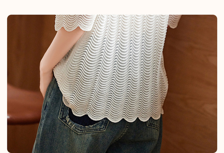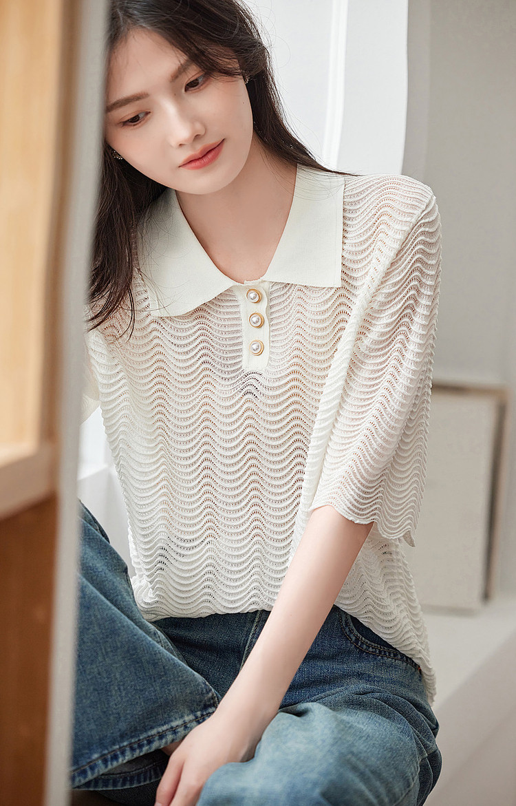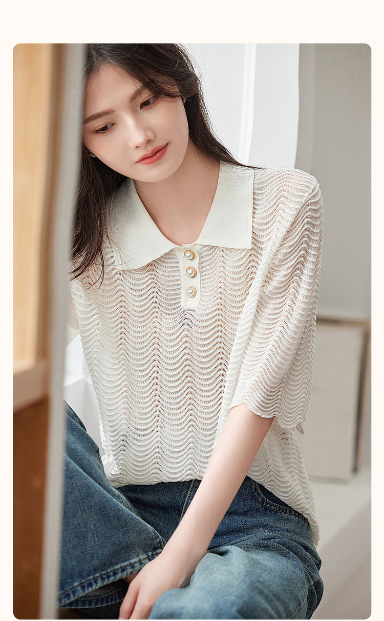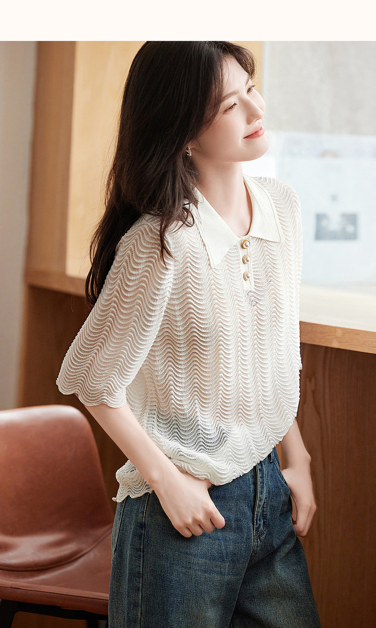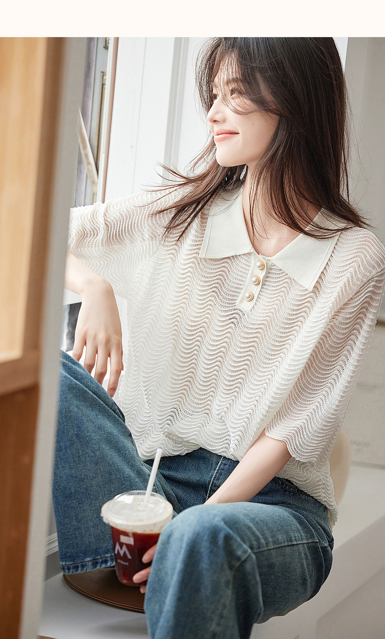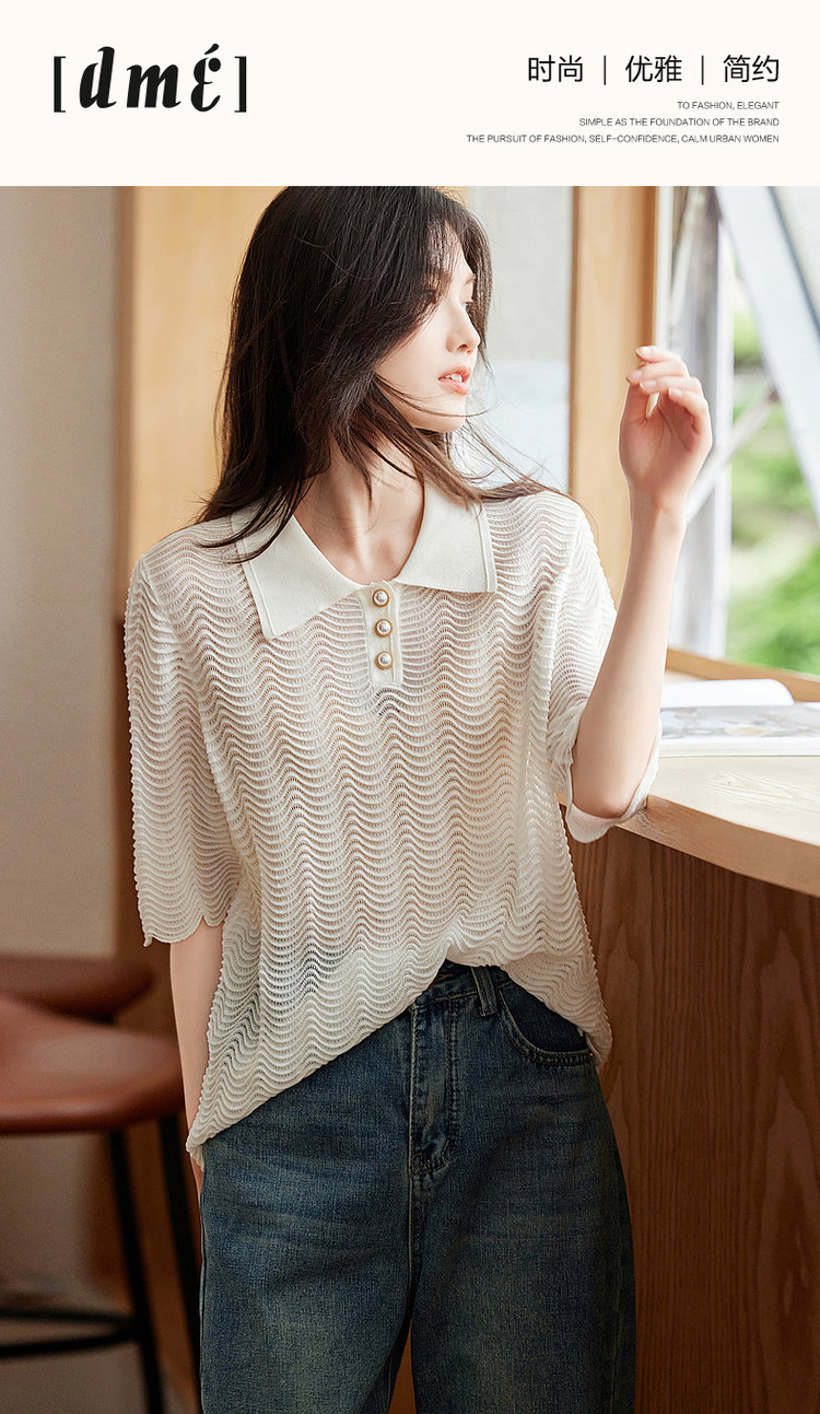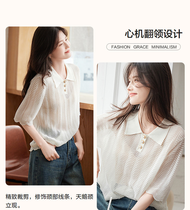 商品名称:【纸片人线衫】夏翻领短袖清透爽气薄款短袖针织衫女上衣 640449