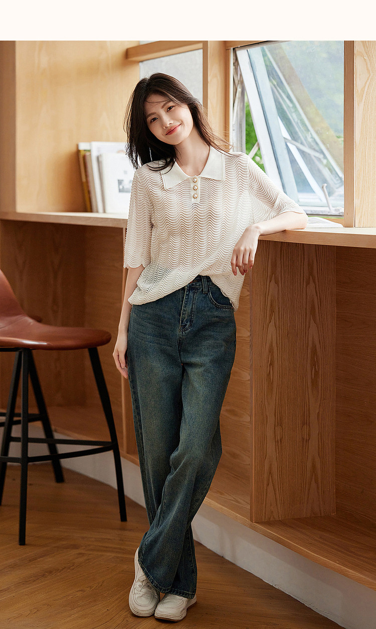 【纸片人线衫】夏翻领短袖清透爽气薄款短袖针织衫女上衣 640449