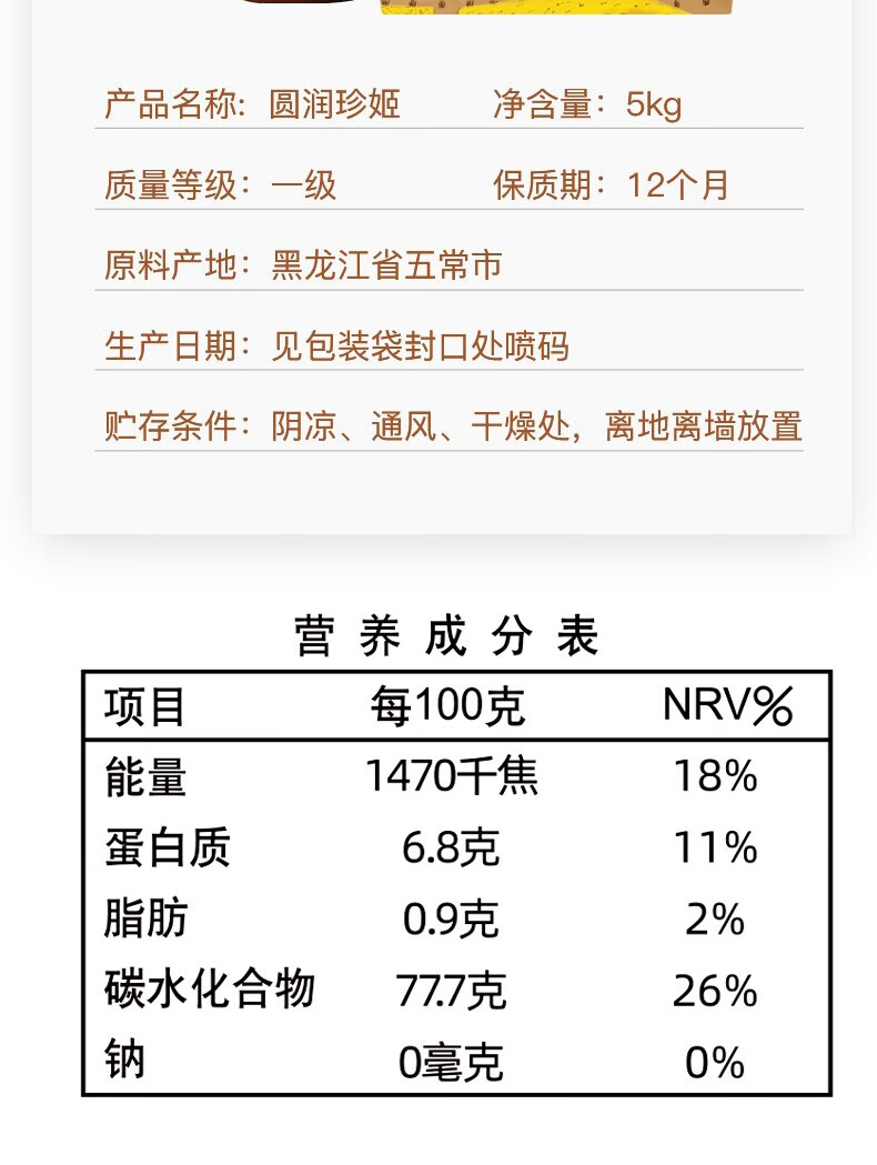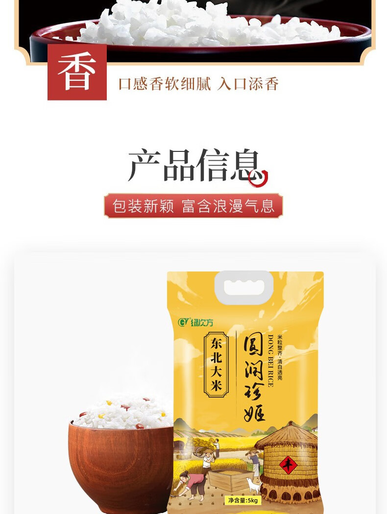 商品名称:【京东/顺丰配送】绿次方圆润珍姬东北大米5kg