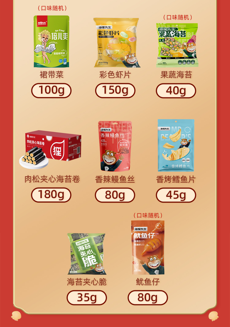 商品名称:【京东/顺丰配送】海狸先生万事如意海味休闲零食礼盒710g
