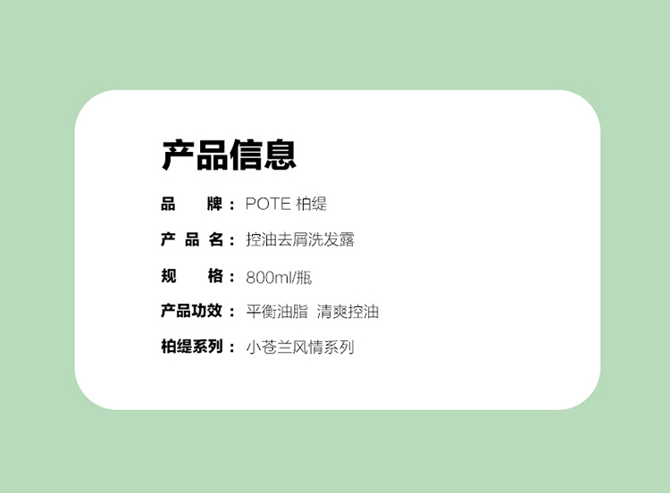商品名称:POTE/柏缇控油去屑洗发露800ml