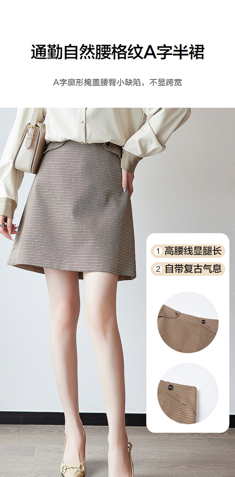 商品名称:【通勤格子a字裙】秋季通勤中腰拉链半身裙女短款 538945