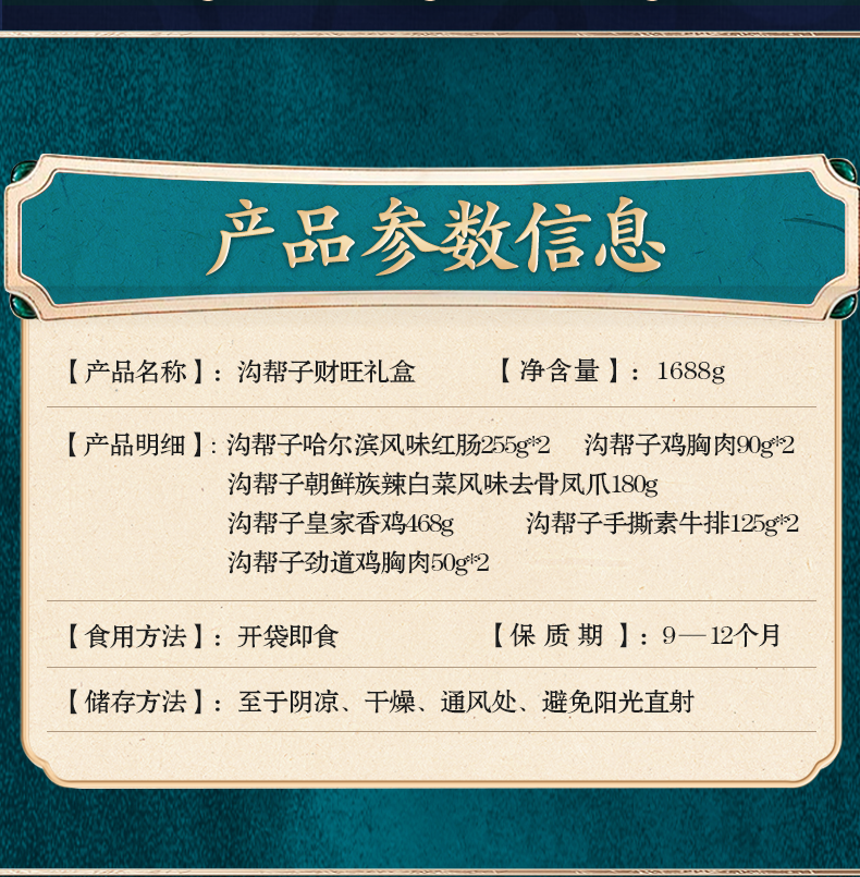 商品名称:【京东/顺丰配送】沟帮子财旺休闲熟食礼盒1688g