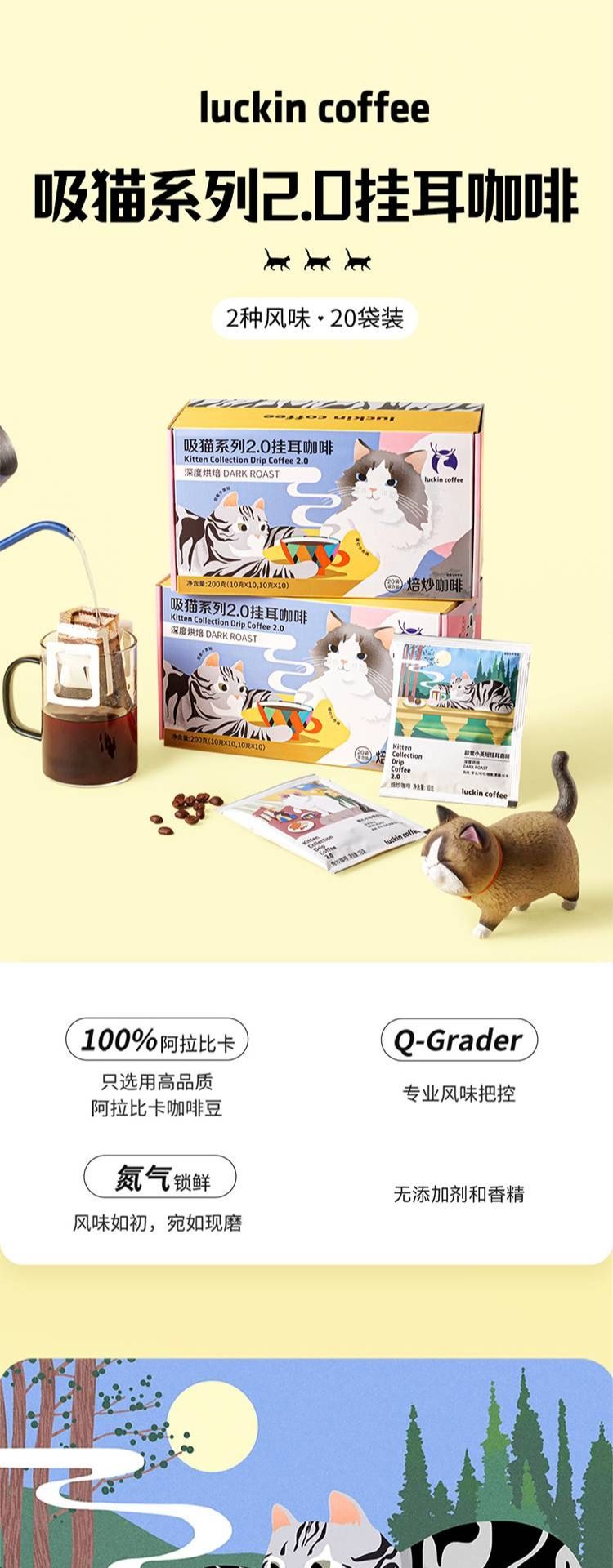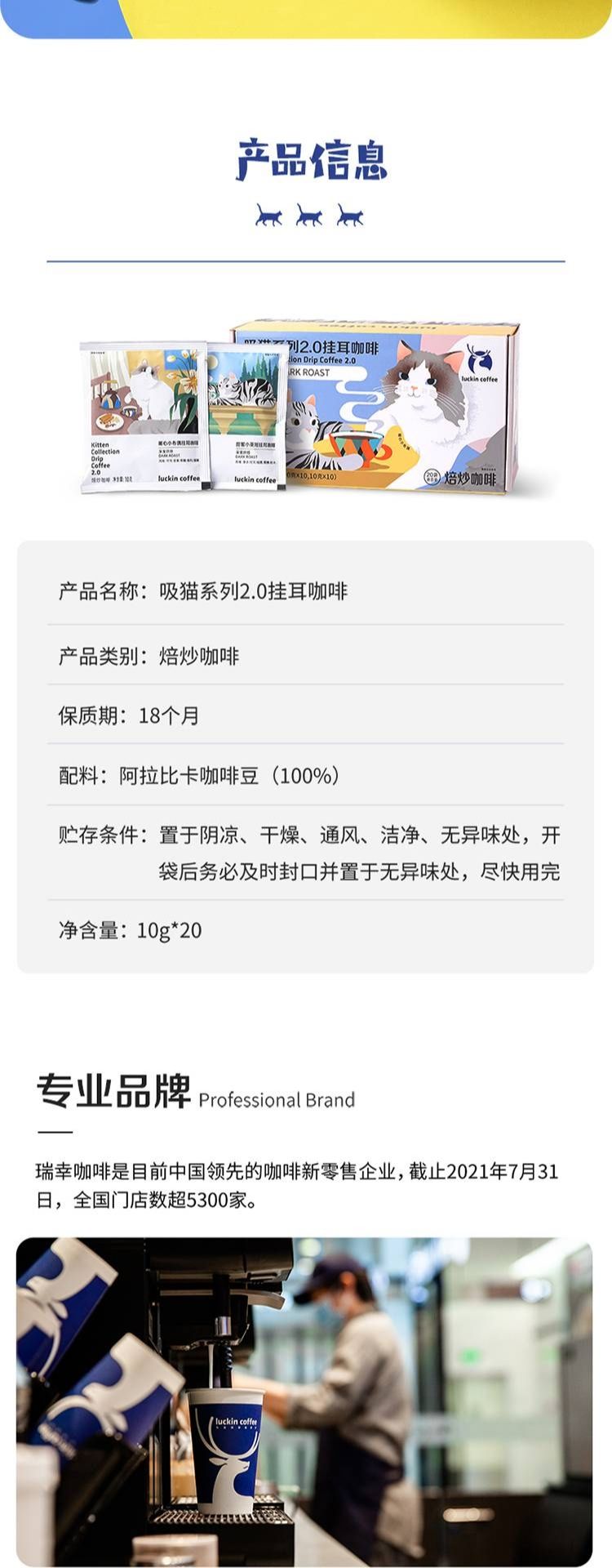 商品名称:瑞幸 luckincoffee 吸猫系列2.0挂耳咖啡10g*20包