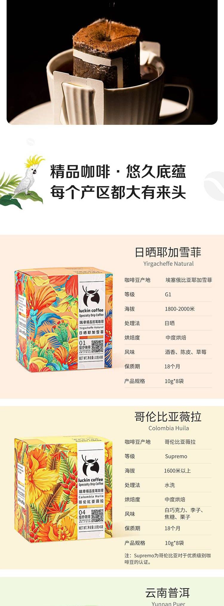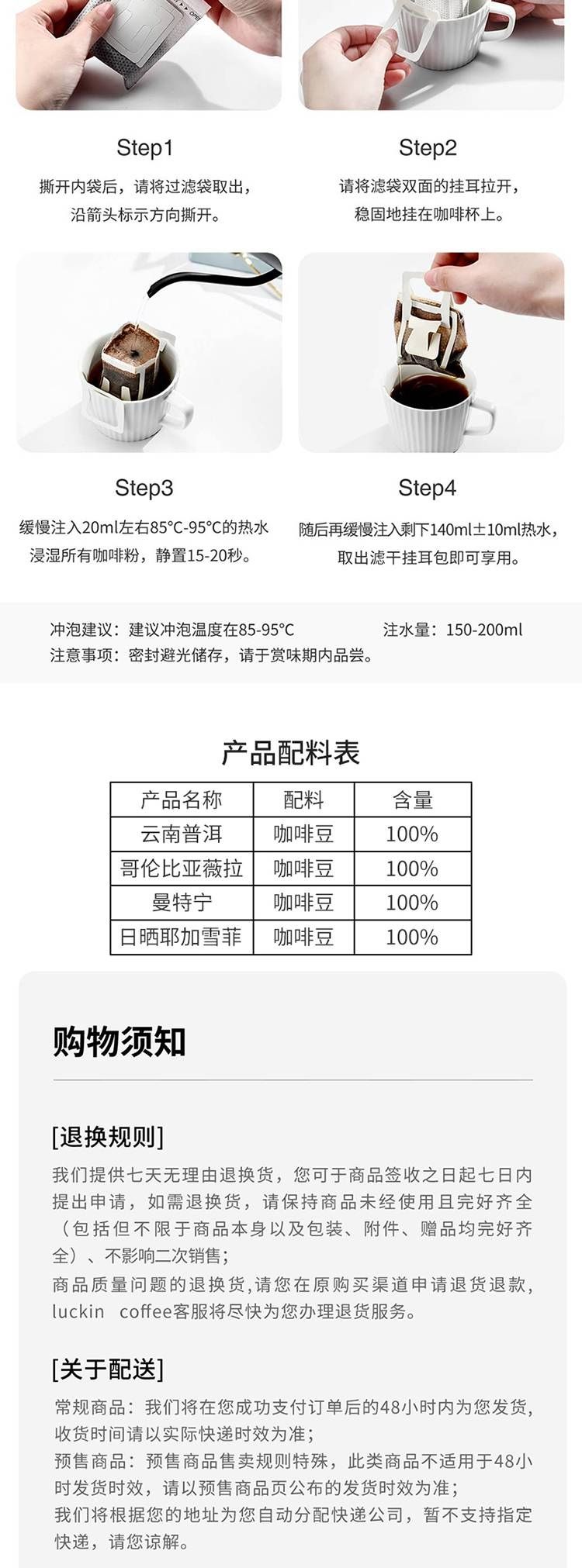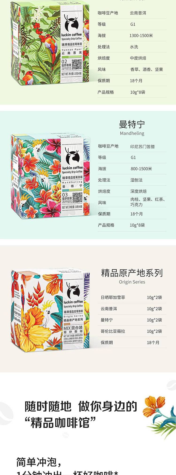 商品名称:瑞幸原产地精品挂耳咖啡 Mix混合装10g*8袋