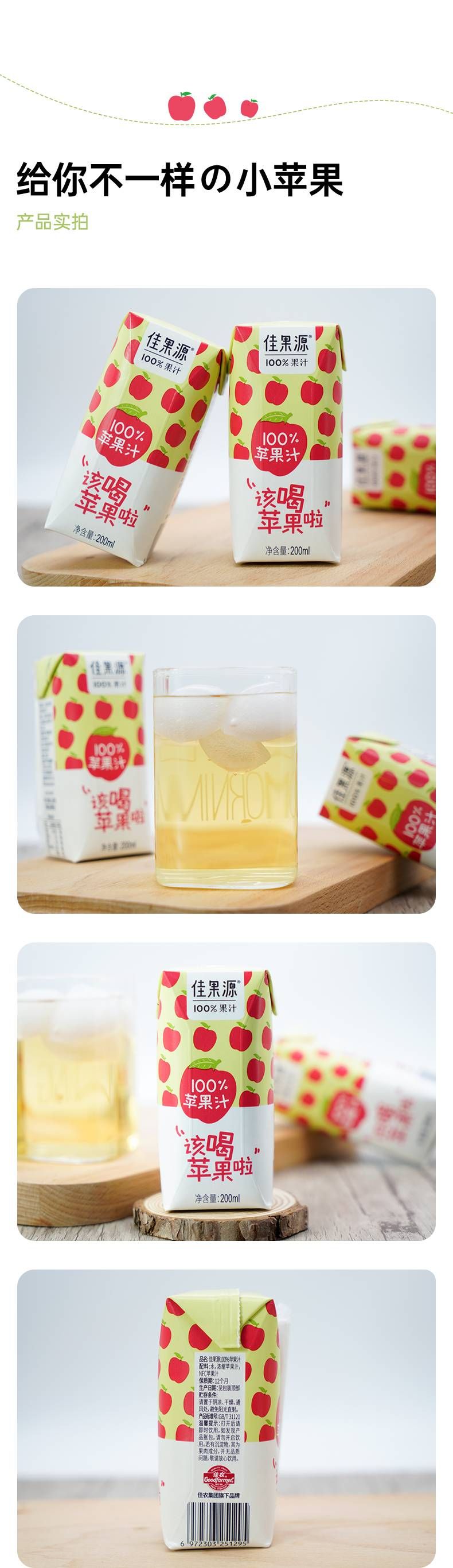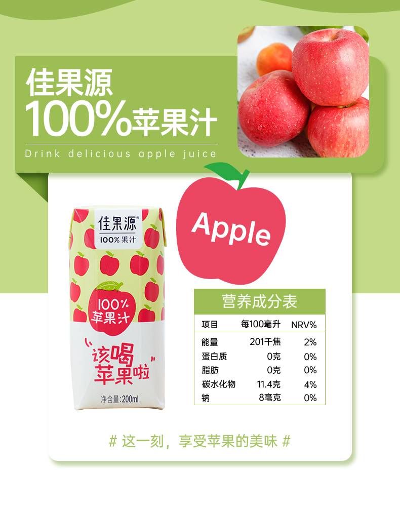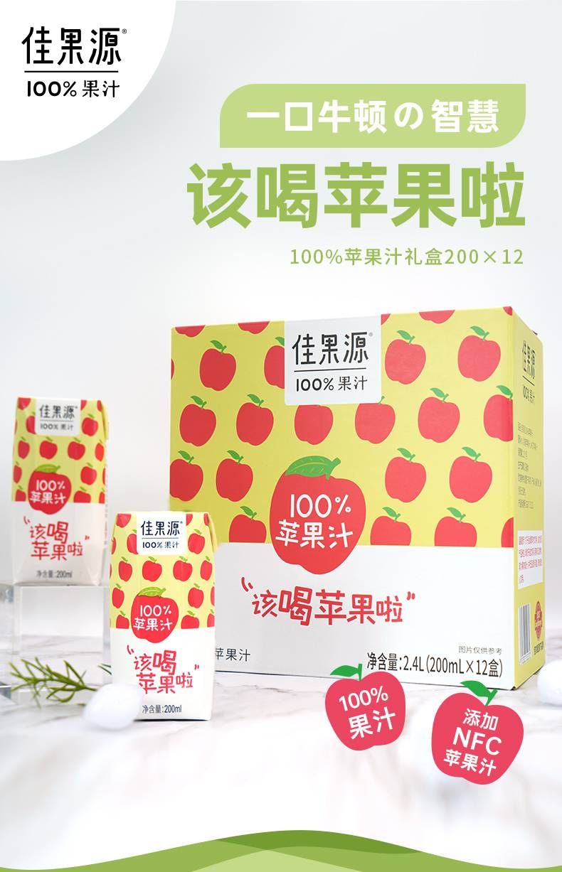 商品名称:佳果源100%苹果汁200ml*12礼盒装