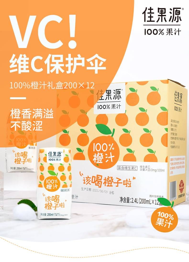 商品名称:佳果源100%橙汁200ml*12礼盒装