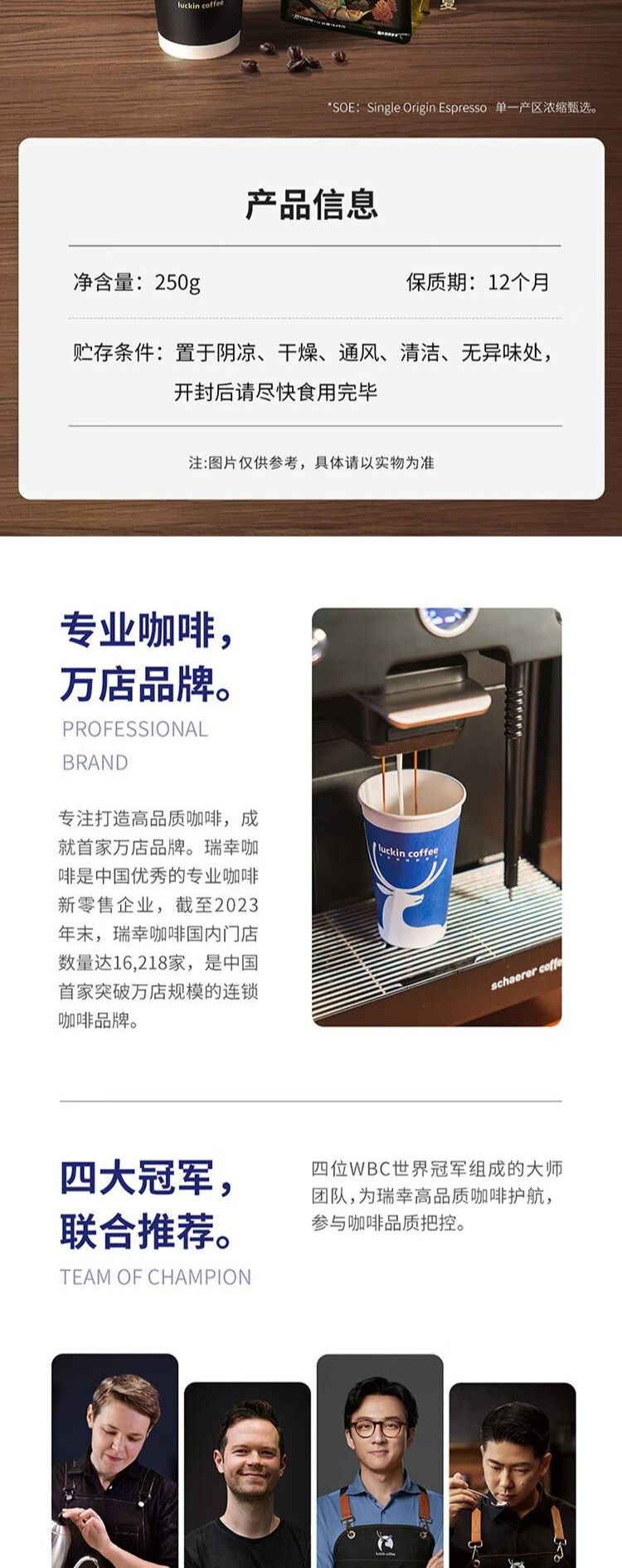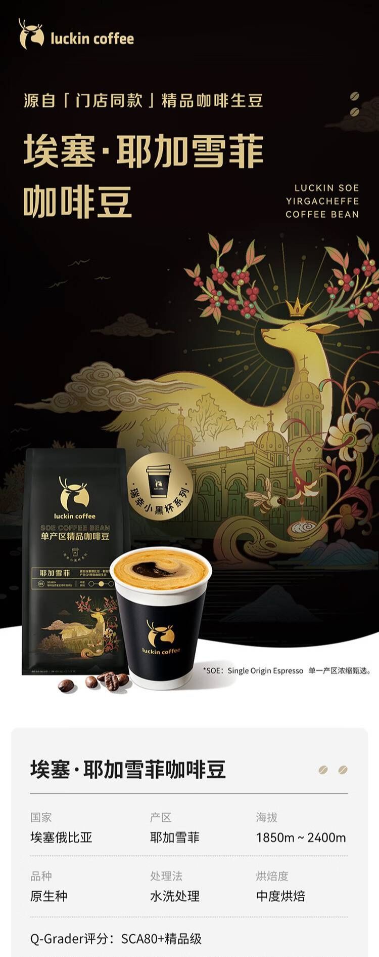 商品名称:瑞幸SOE 耶加雪菲咖啡豆 250g/袋