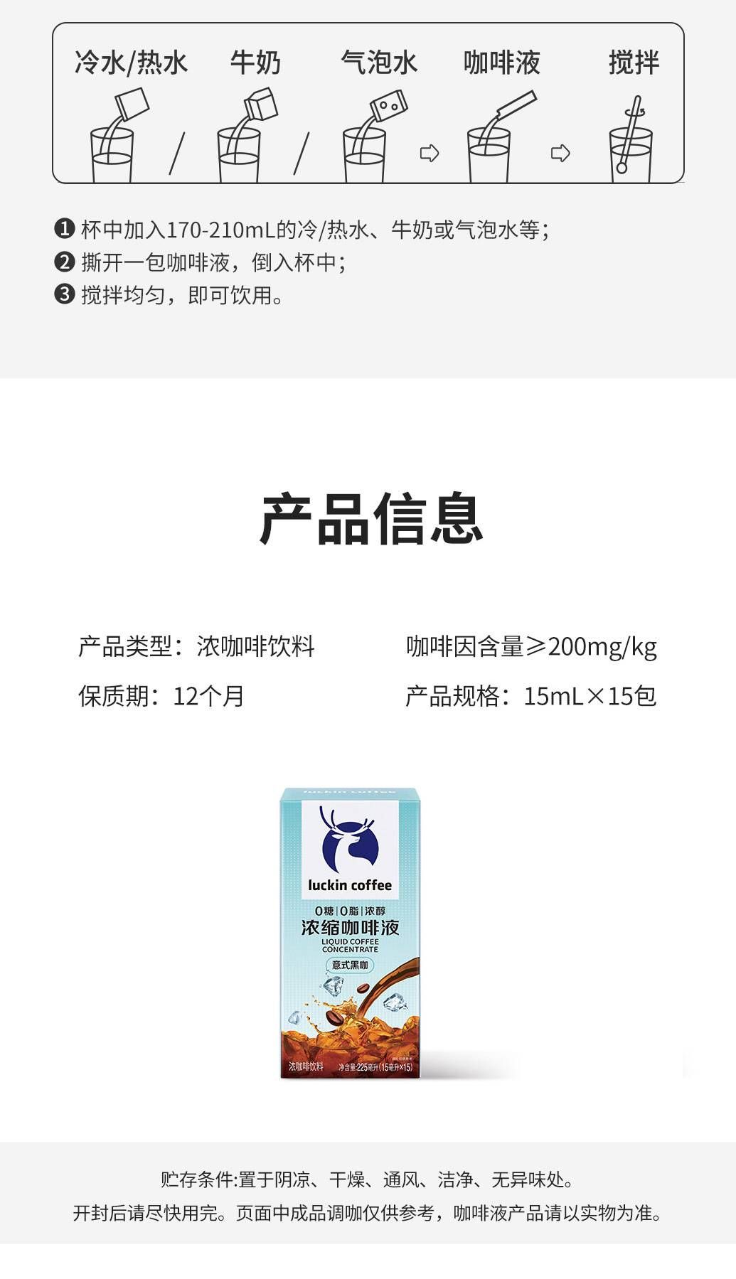 商品名称:瑞幸咖啡 浓醇浓缩咖啡液-意式黑咖15ml*15条