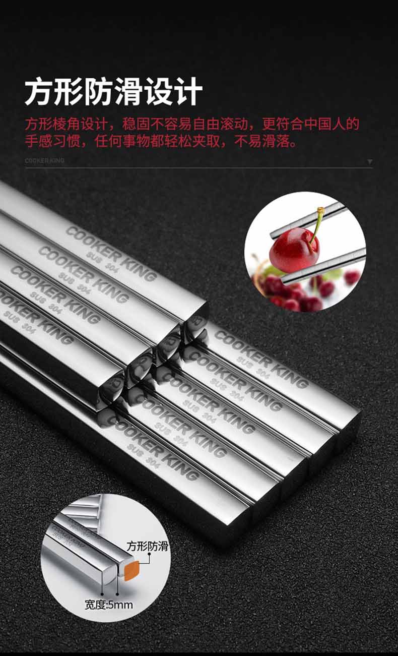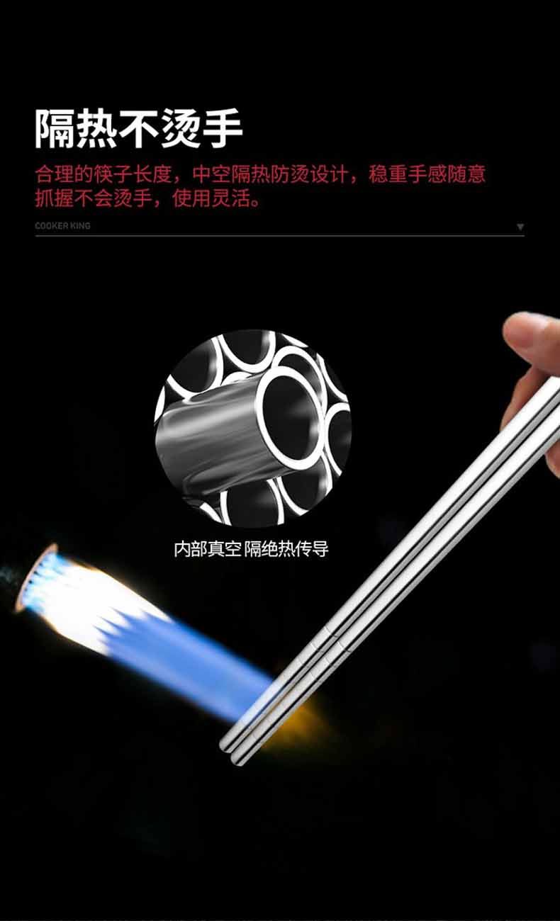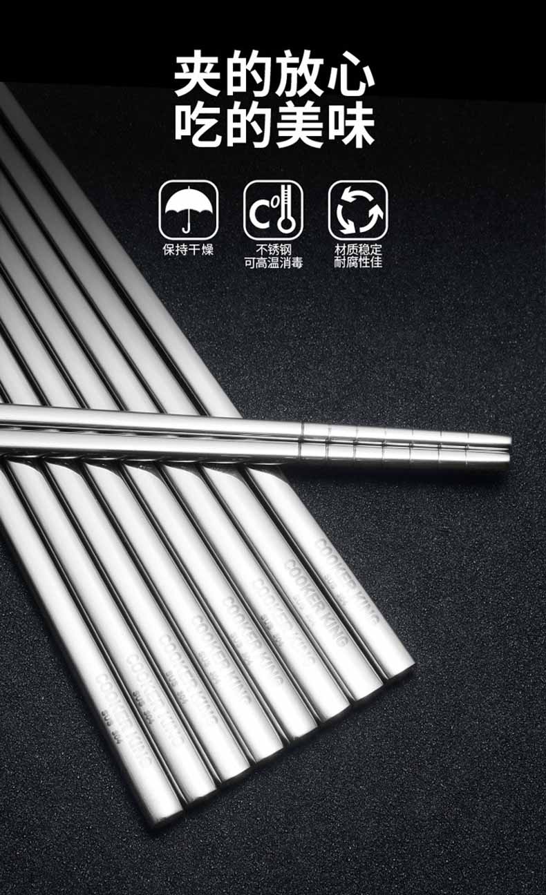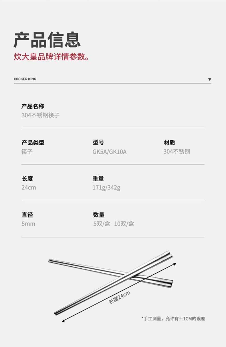 商品名称:炊大皇 304不锈钢筷子十双装GK10A 防烫家庭轻奢工具金属筷子餐具
