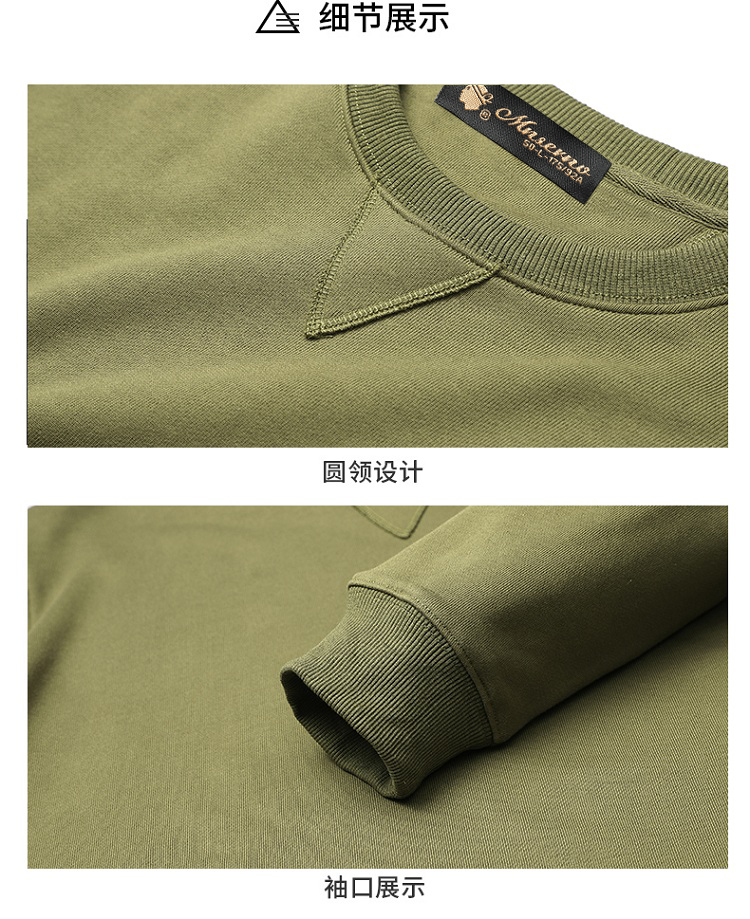 商品名称:曼西尔奴男士纯色简约宽松纯棉百搭舒适保暖磨毛休闲百搭舒适卫衣221101TM