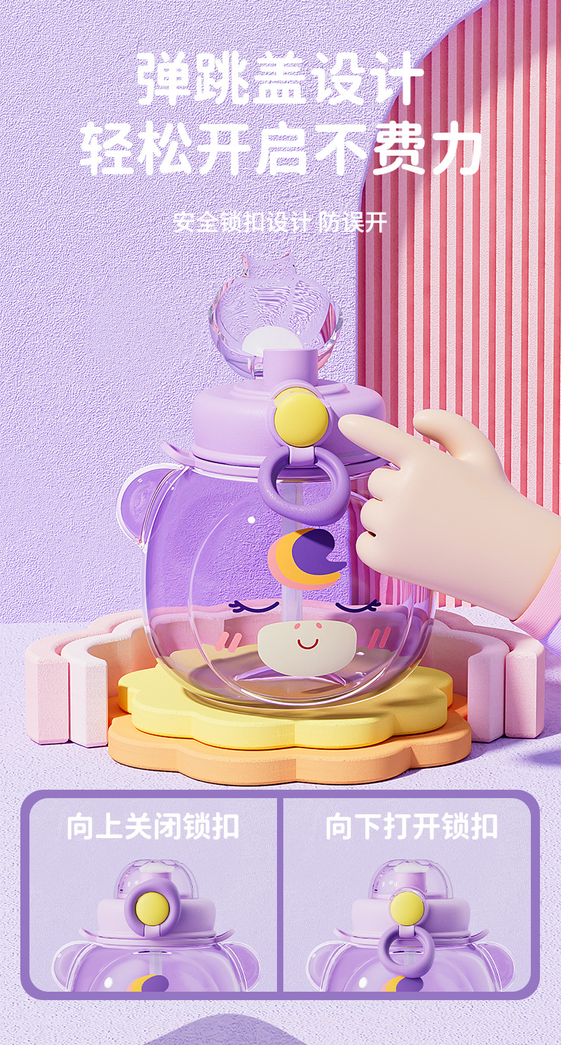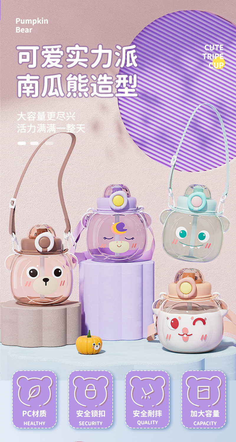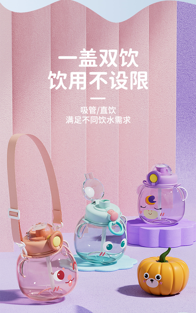 商品名称:可爱卡通小熊儿童水杯塑料吸管杯2023新款双饮大肚杯学生运动水壶