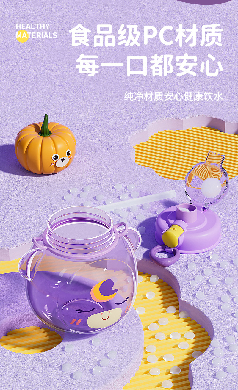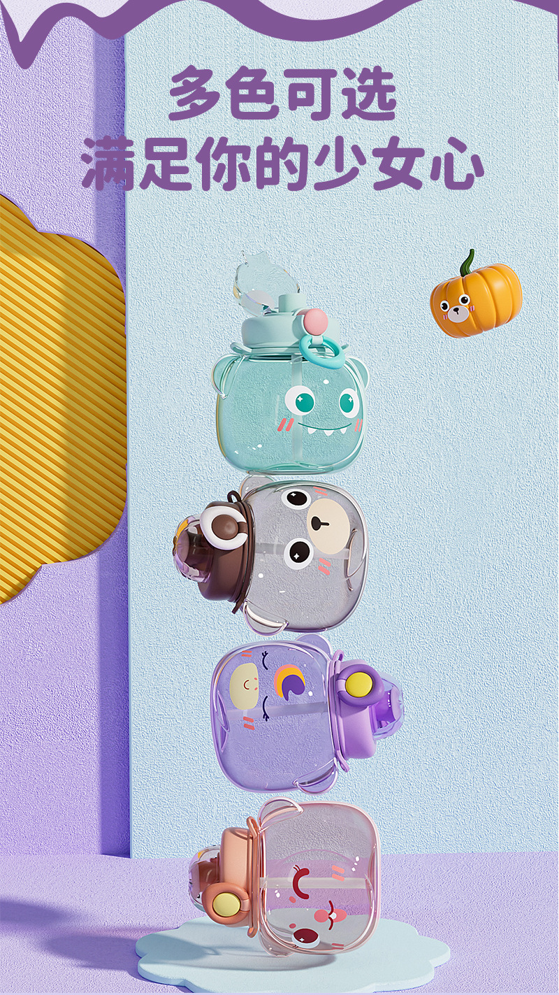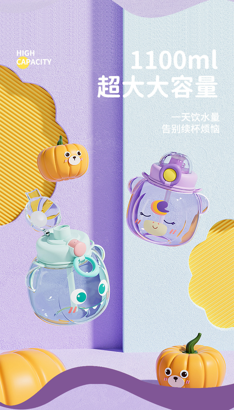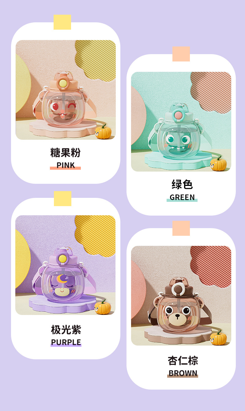 商品名称:可爱卡通小熊儿童水杯塑料吸管杯2023新款双饮大肚杯学生运动水壶