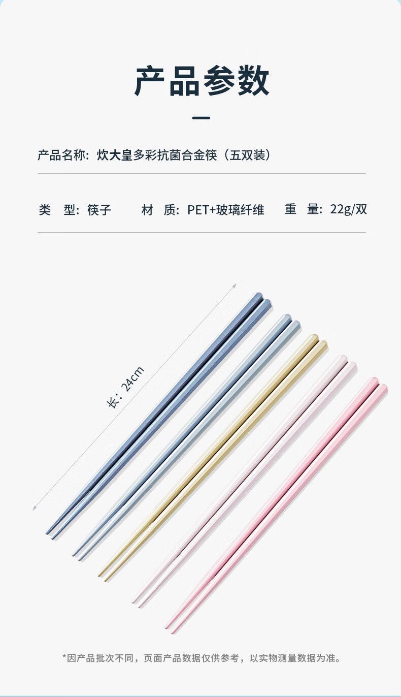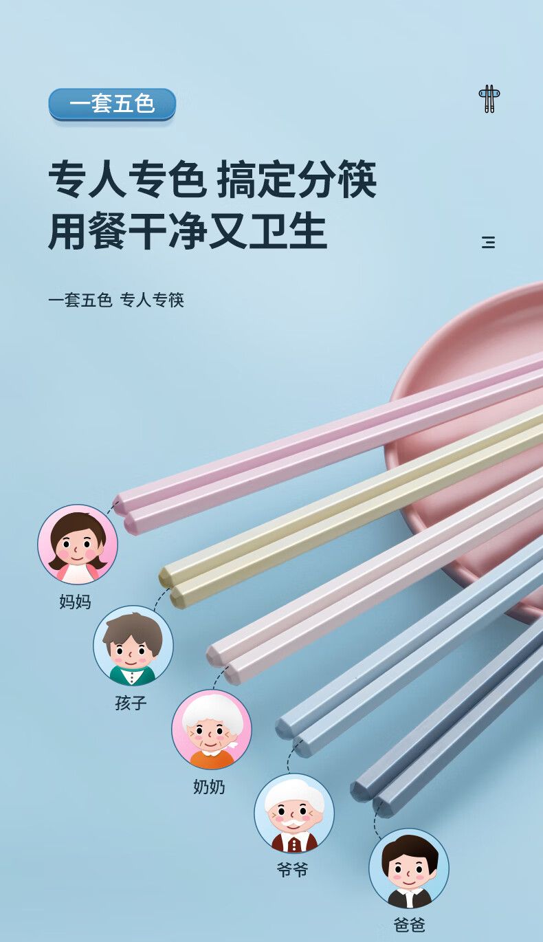 商品名称:炊大皇 多彩合金筷5双装KZ05HJ 防霉防滑耐高温 创意分餐分食筷子