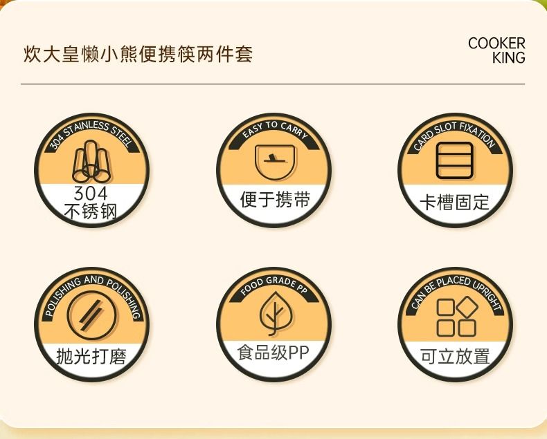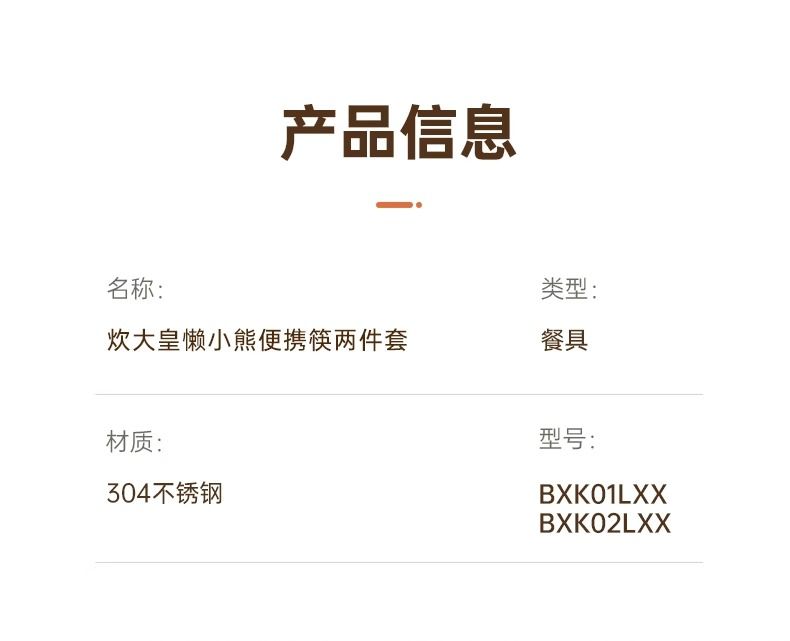 商品名称:炊大皇 懒小熊便携筷子两件套 BXK01LXX黄 BXK02LX白