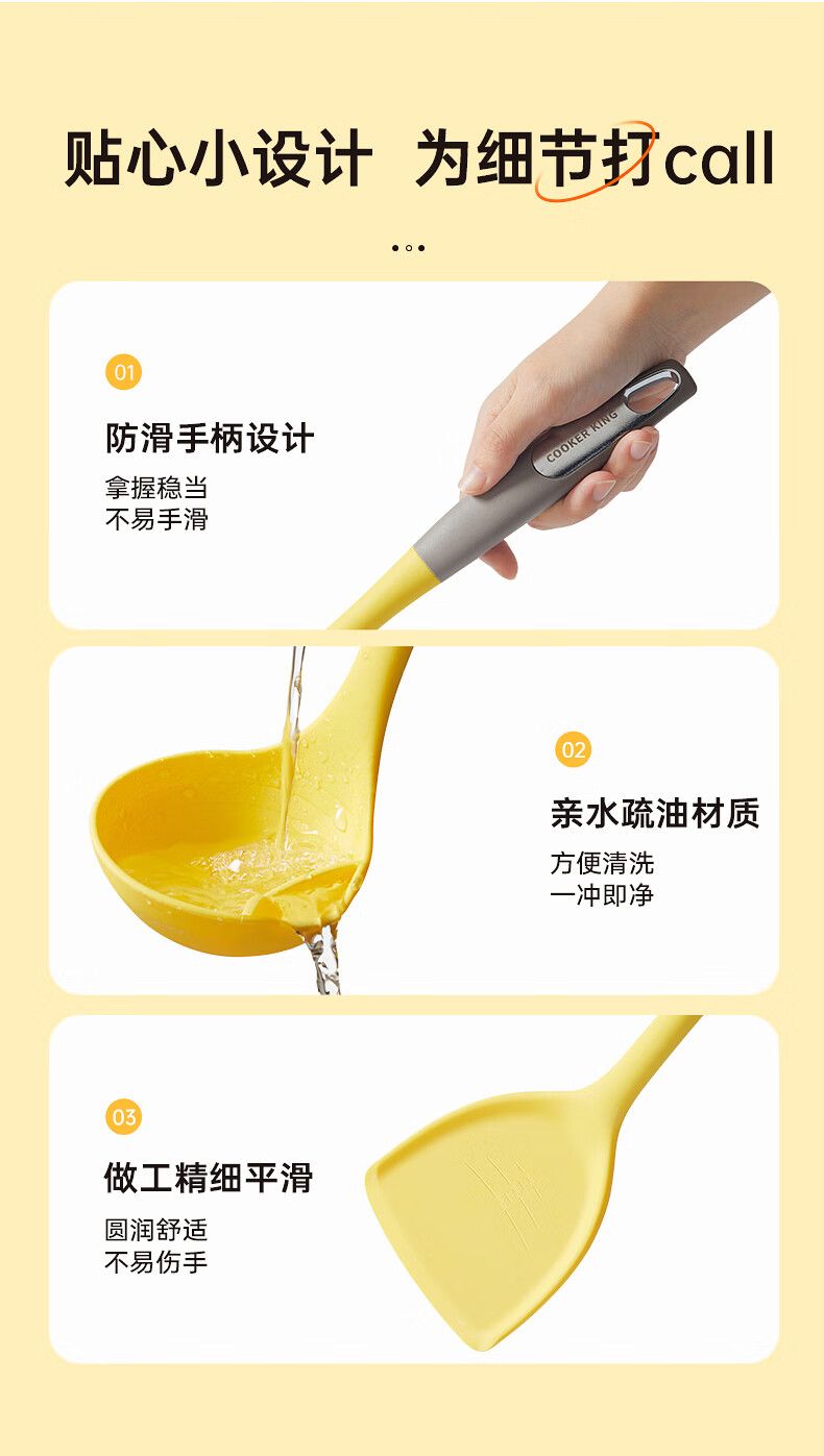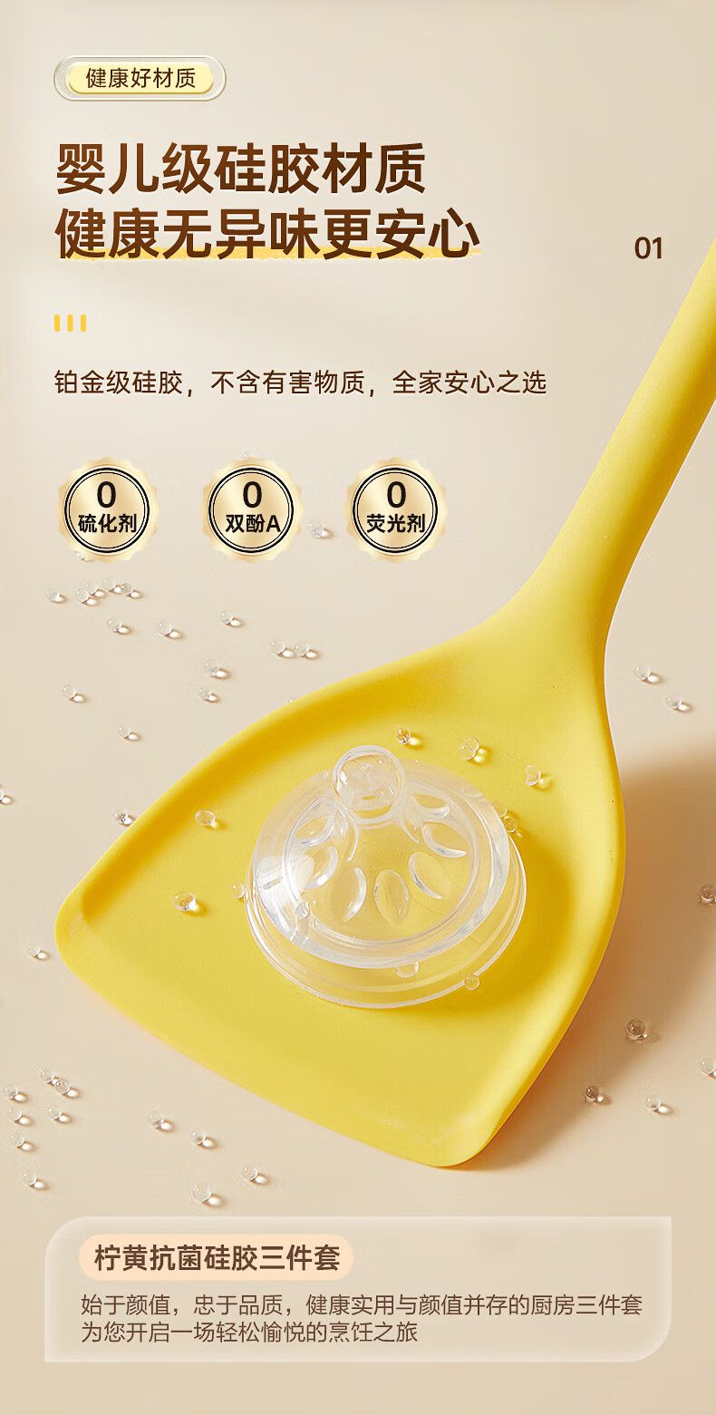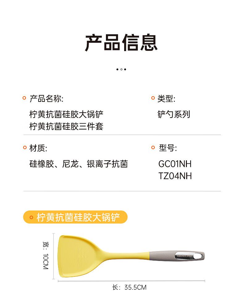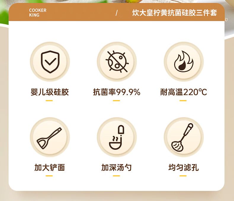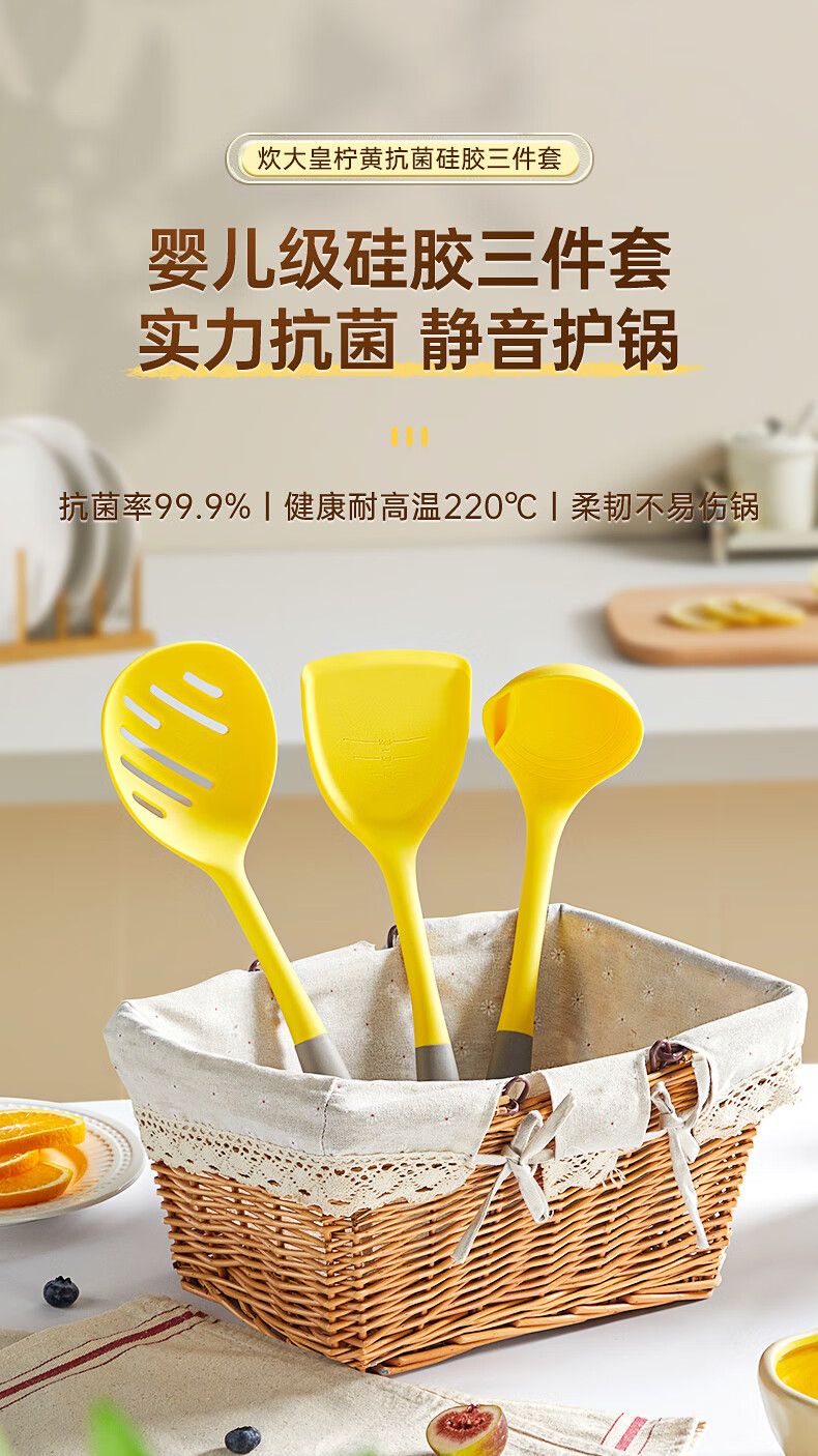 商品名称:炊大皇 柠黄抗菌硅胶三件套 TZ04NH