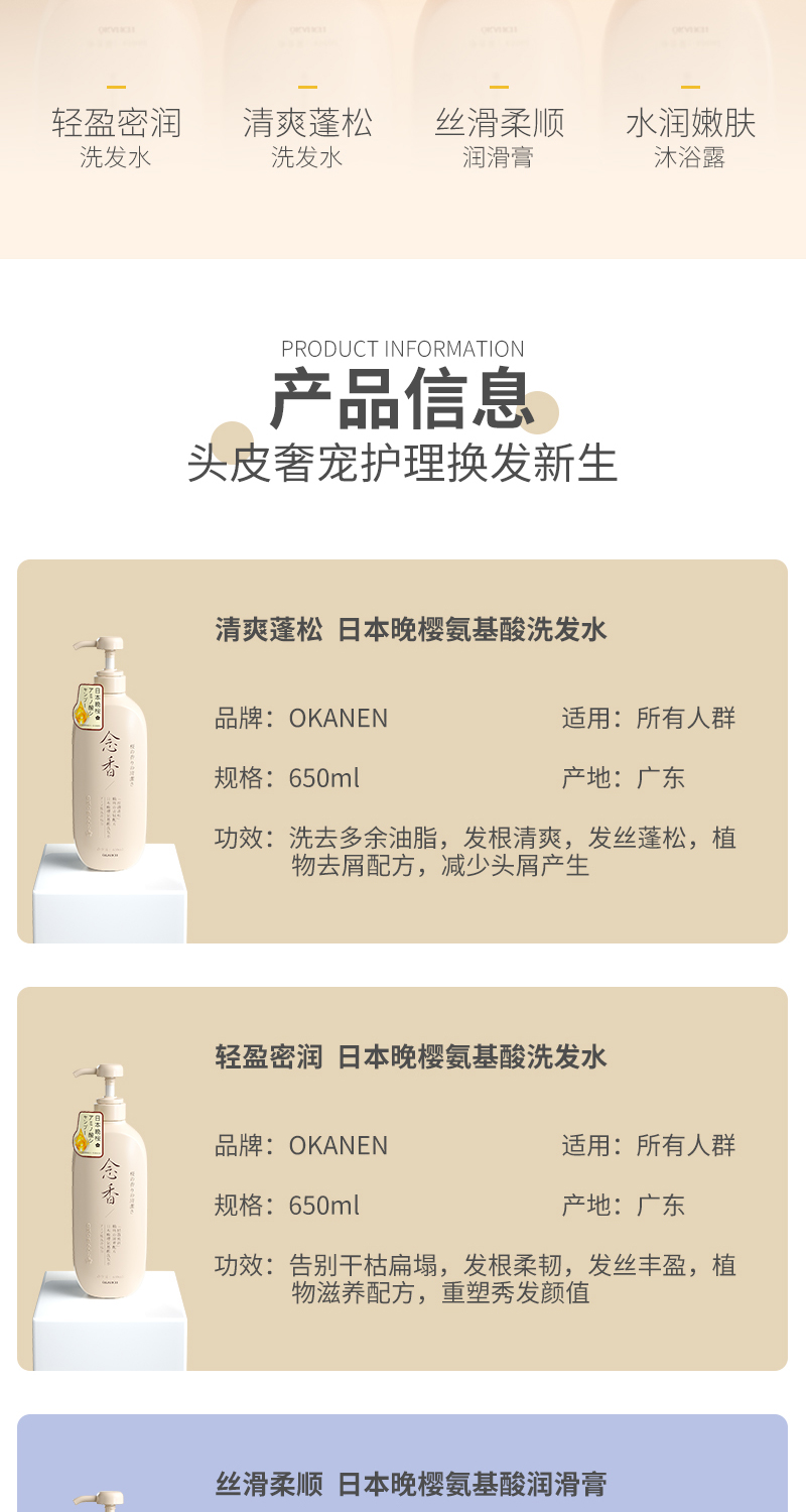 商品名称:【3件套-包邮】OKAN:EN欧嘉莱尼氨基酸洗发水沐浴露护发素洗沐护套装成人