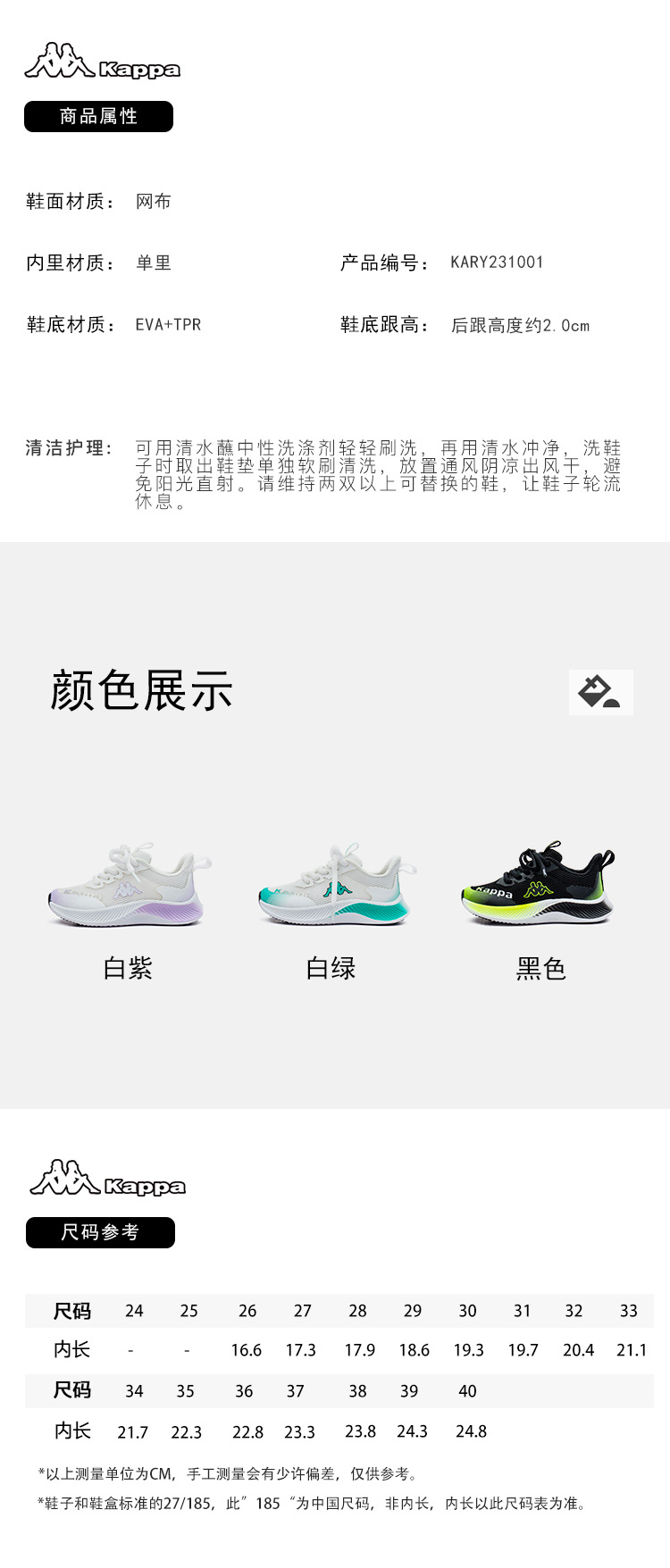 商品名称:Kappa kids童鞋男女童时尚跑步百搭中大童运动鞋休闲透气舒适夏款男童女童鞋子