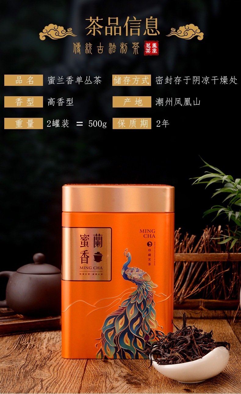 商品名称:【礼盒装两罐500g】凤凰单枞茶蜜兰香新茶潮州凤凰单丛乌龙茶罐装高山茶叶