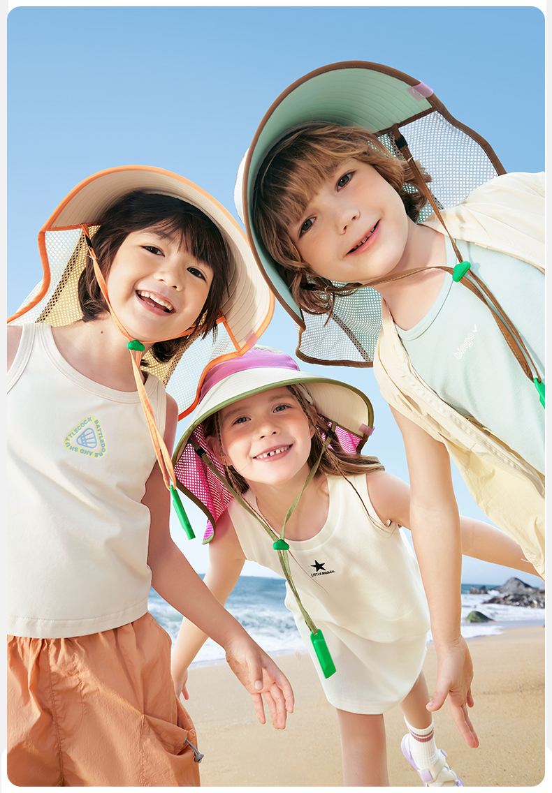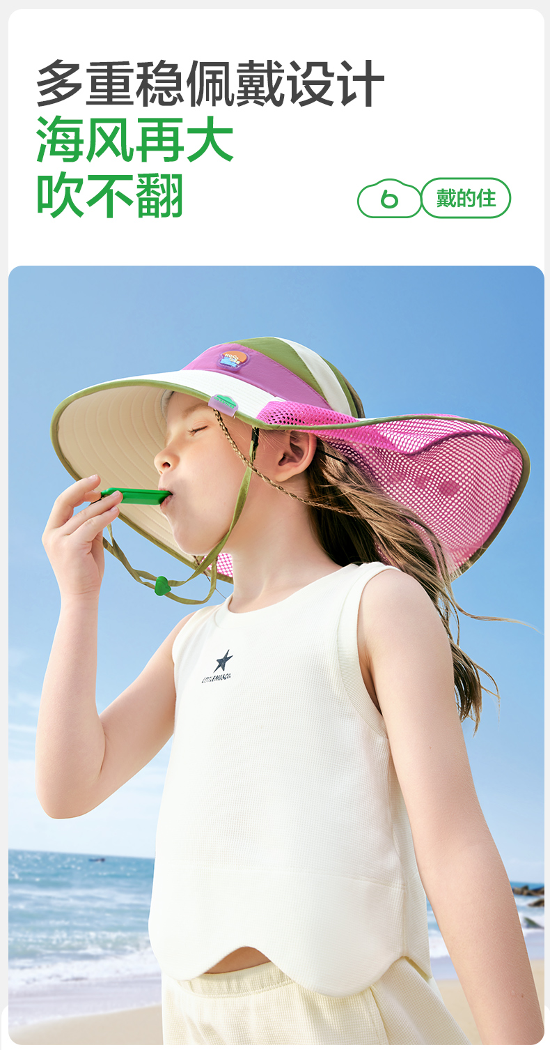 商品名称:【直供】KK树儿童防晒帽男女童2025新宝宝海边太阳帽子遮阳帽防紫外线小雪顶呼吸防晒帽