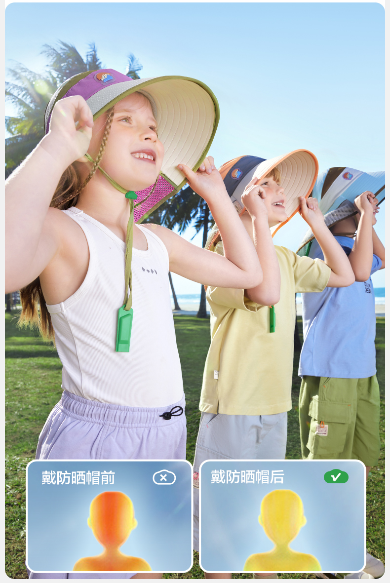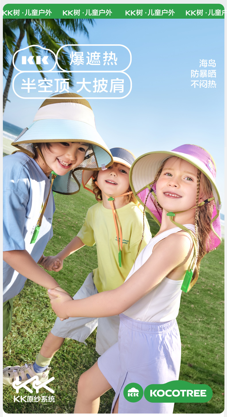 【直供】KK树儿童防晒帽男女童2025新宝宝海边太阳帽子遮阳帽防紫外线小雪顶呼吸防晒帽