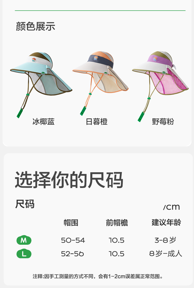 M码 建议头围50- 54cm 3-8岁
