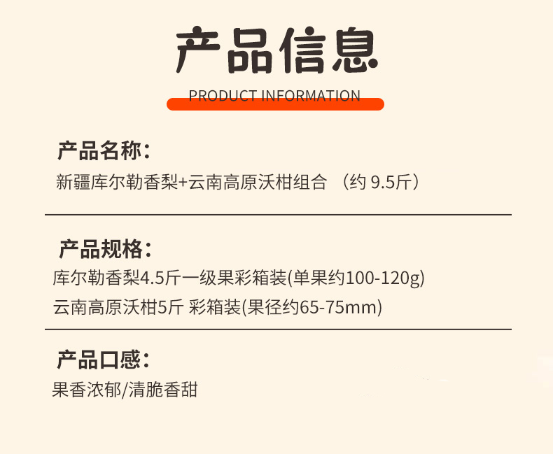 商品名称:【京东/顺丰配送】食欲跳动云南大理高原沃柑+新疆库尔勒香梨组合4750g