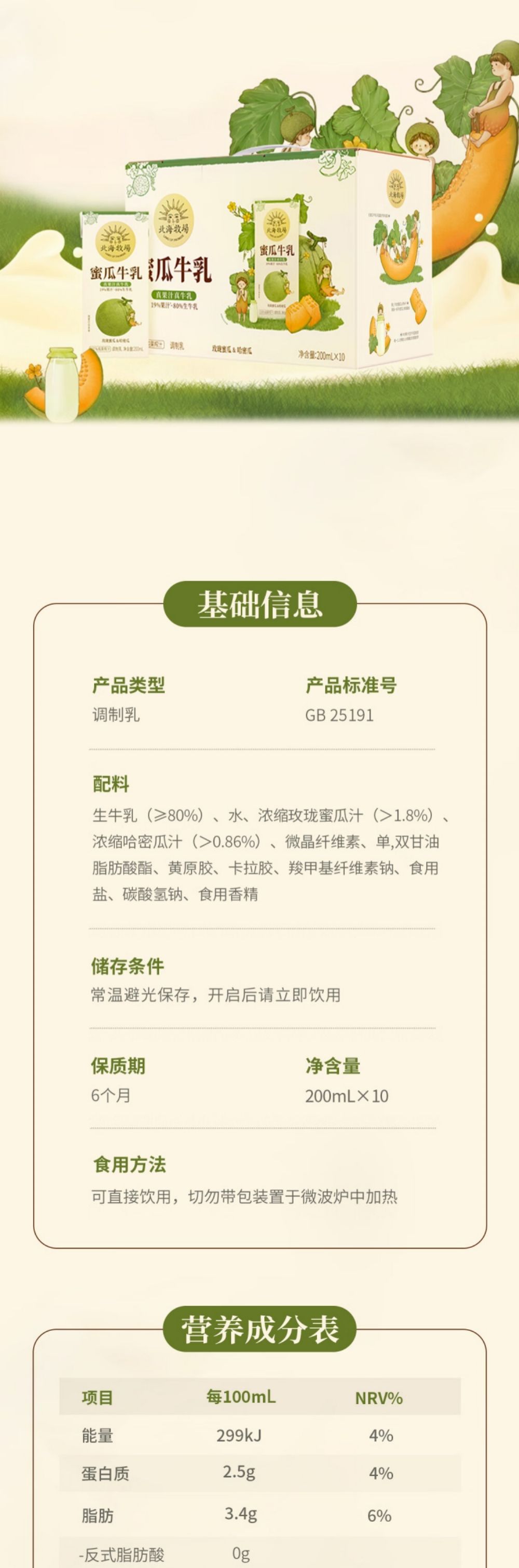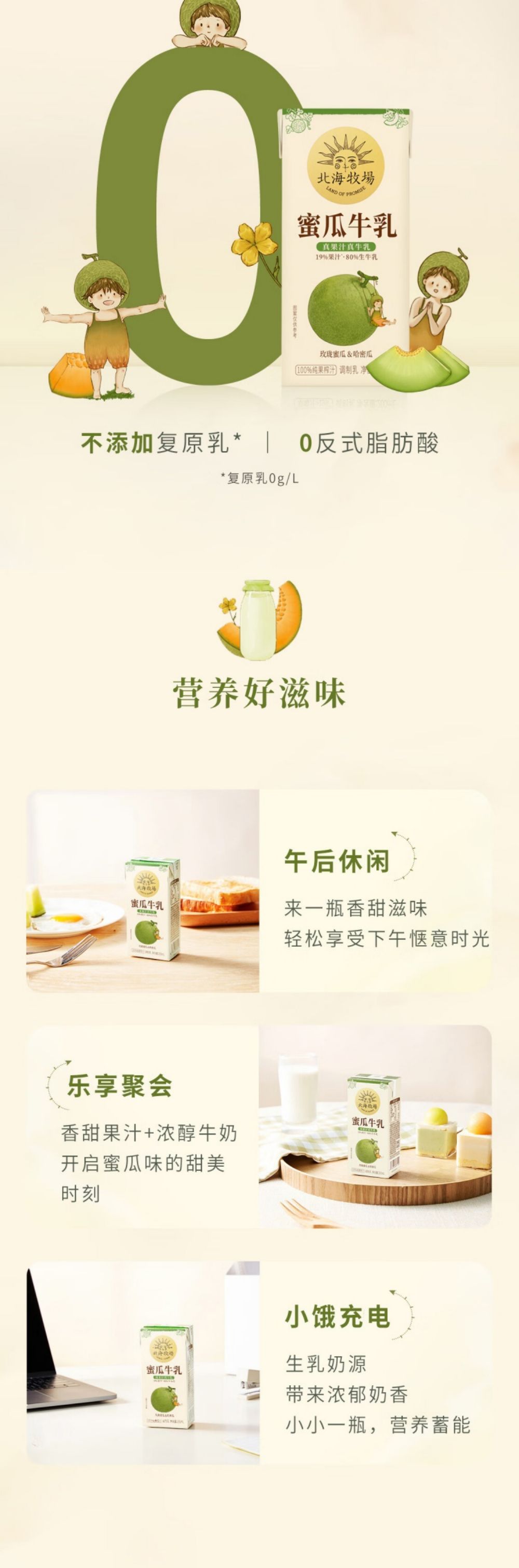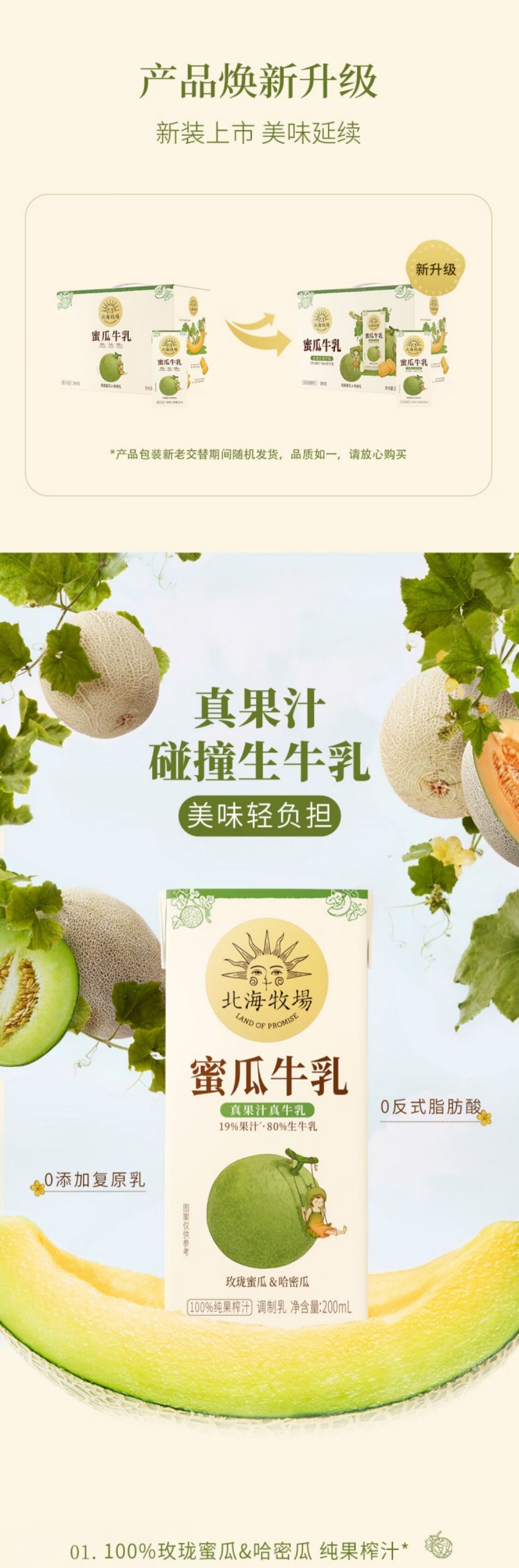 商品名称:北海牧场密瓜牛乳整箱200ml*10盒