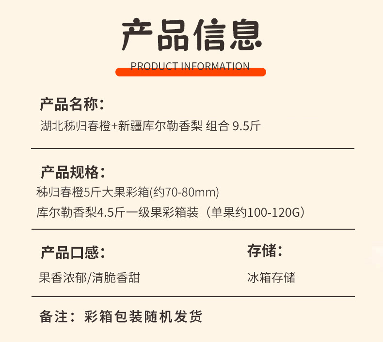 商品名称:【京东/顺丰配送】食欲跳动秭归春橙+新疆库尔勒香梨组合4750g