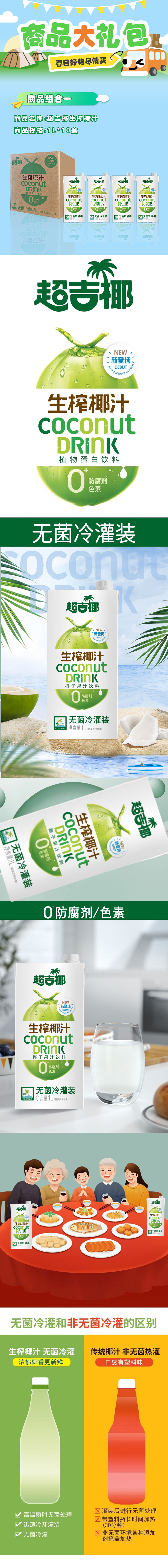 商品名称:【京东/顺丰/德邦配送】超吉椰生榨椰汁整箱1L*10盒