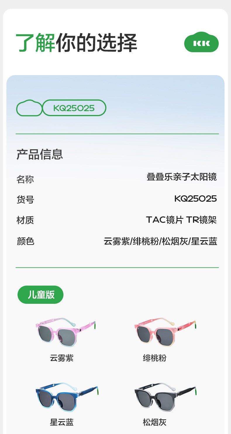 商品名称:【直供】KK树儿童墨镜可折叠男女童太阳镜偏光防紫外线宝宝眼镜防晒叠叠乐亲子太阳镜