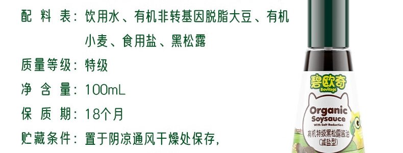 商品名称:碧欧奇 有机特级黑松露酱油 100ml