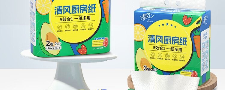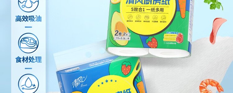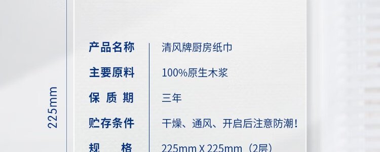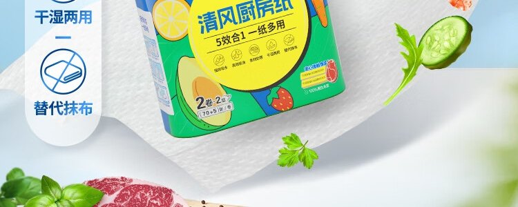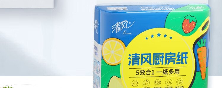 商品名称:清风 双层厨房纸巾 75段/卷*2卷*4提