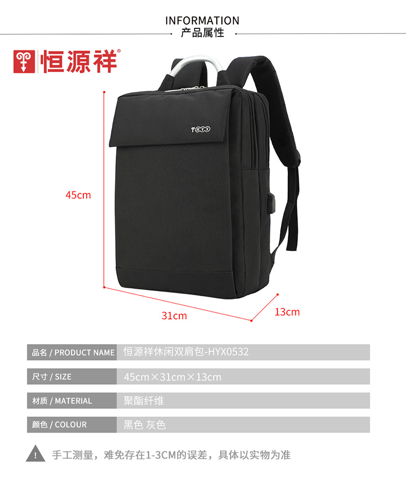 商品名称:恒源祥(HYX0532)休闲双肩包31*13*45cm