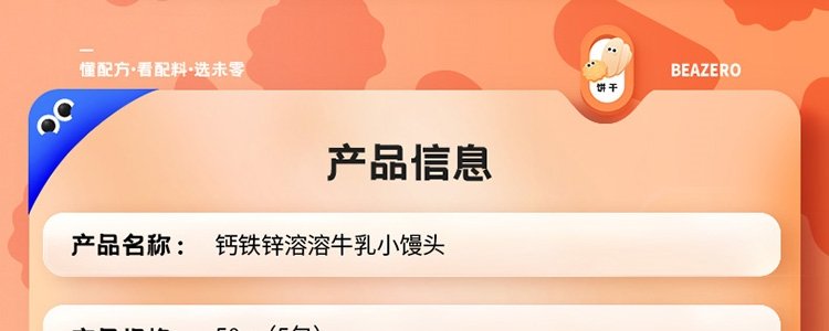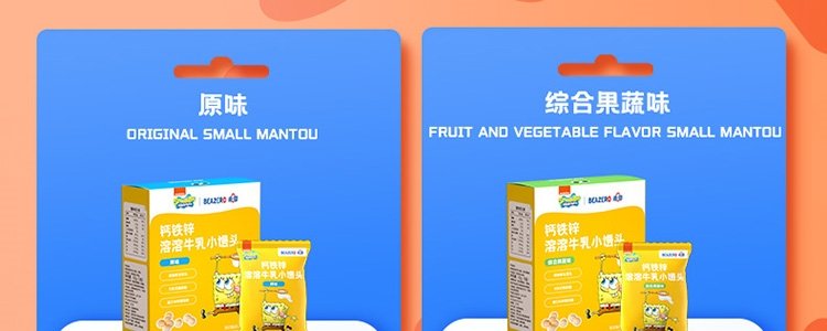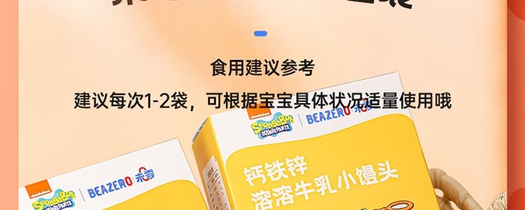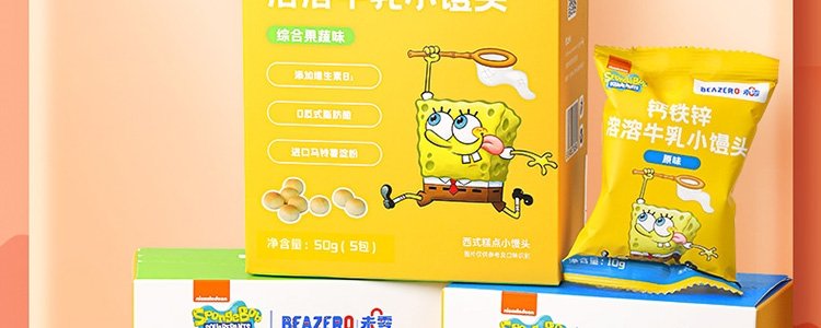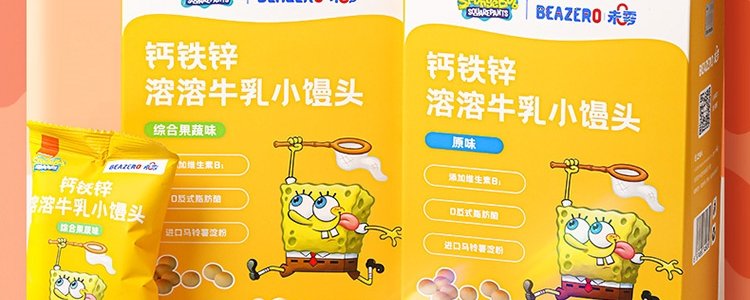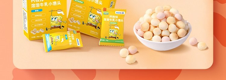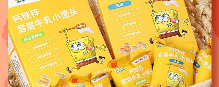 商品名称:海绵宝宝 钙铁锌溶溶牛乳小馒头(原味) 50g