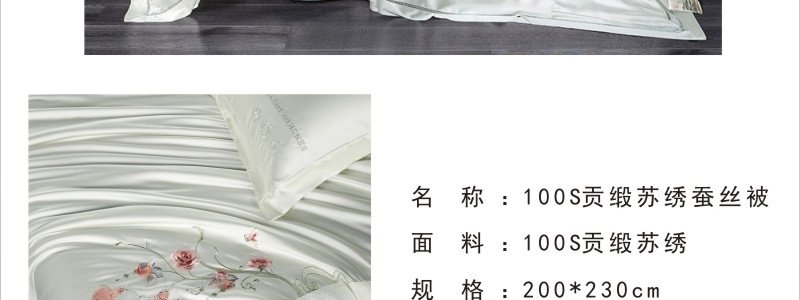 商品名称:彼加曼 100S贡缎苏绣蚕丝空调被 福禄双全 200*230cm (总重2.1KG蚕丝500g)