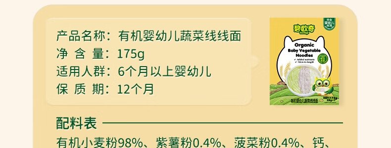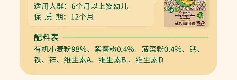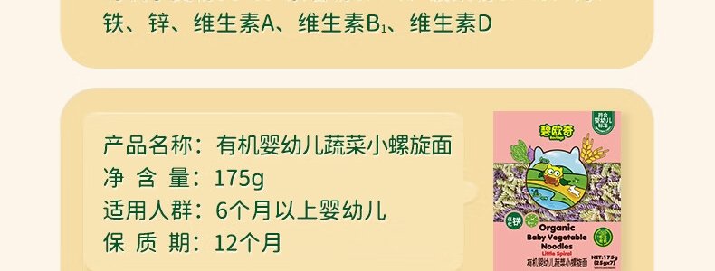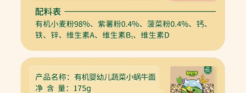 商品名称:碧欧奇 有机婴幼儿蔬菜小蜗牛面 175g