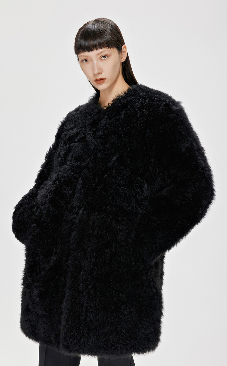 商品名称:冬毛皮大衣宽松H型外套女 800011