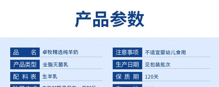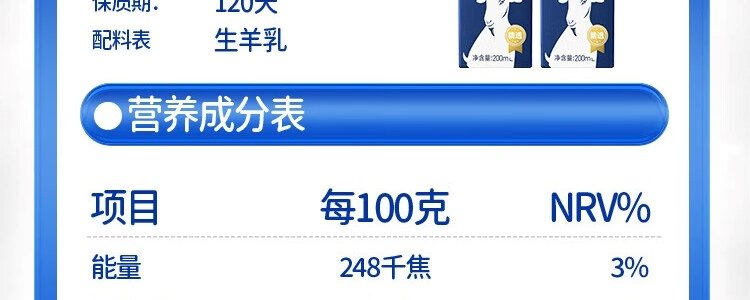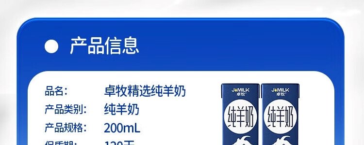 商品名称:卓牧(JOMILK)纯羊奶200ml*6盒*2箱