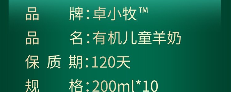 商品名称:卓牧(JOMILK)有机儿童羊奶 200ml*10盒