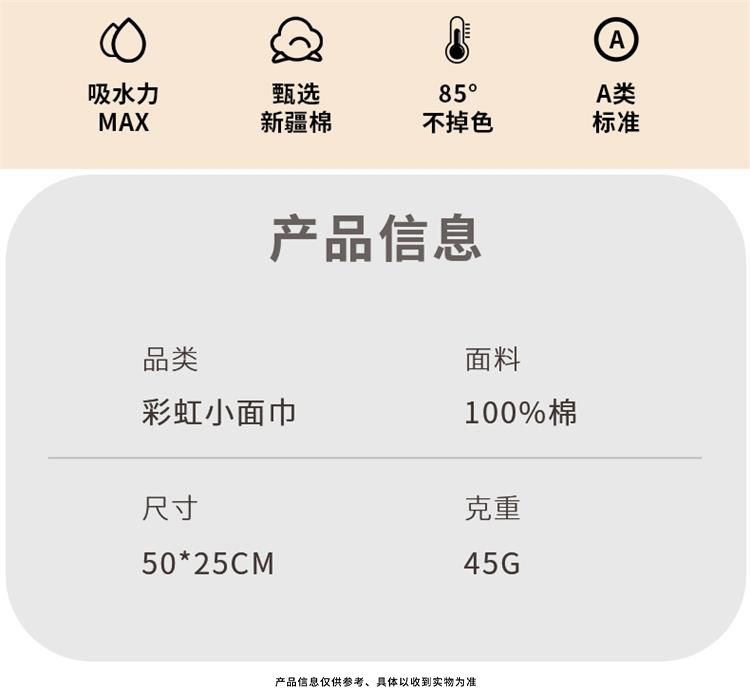 商品名称:宜朵(YIDUO)彩虹小面巾天然纯棉吸水不掉毛不掉色家用多色可选