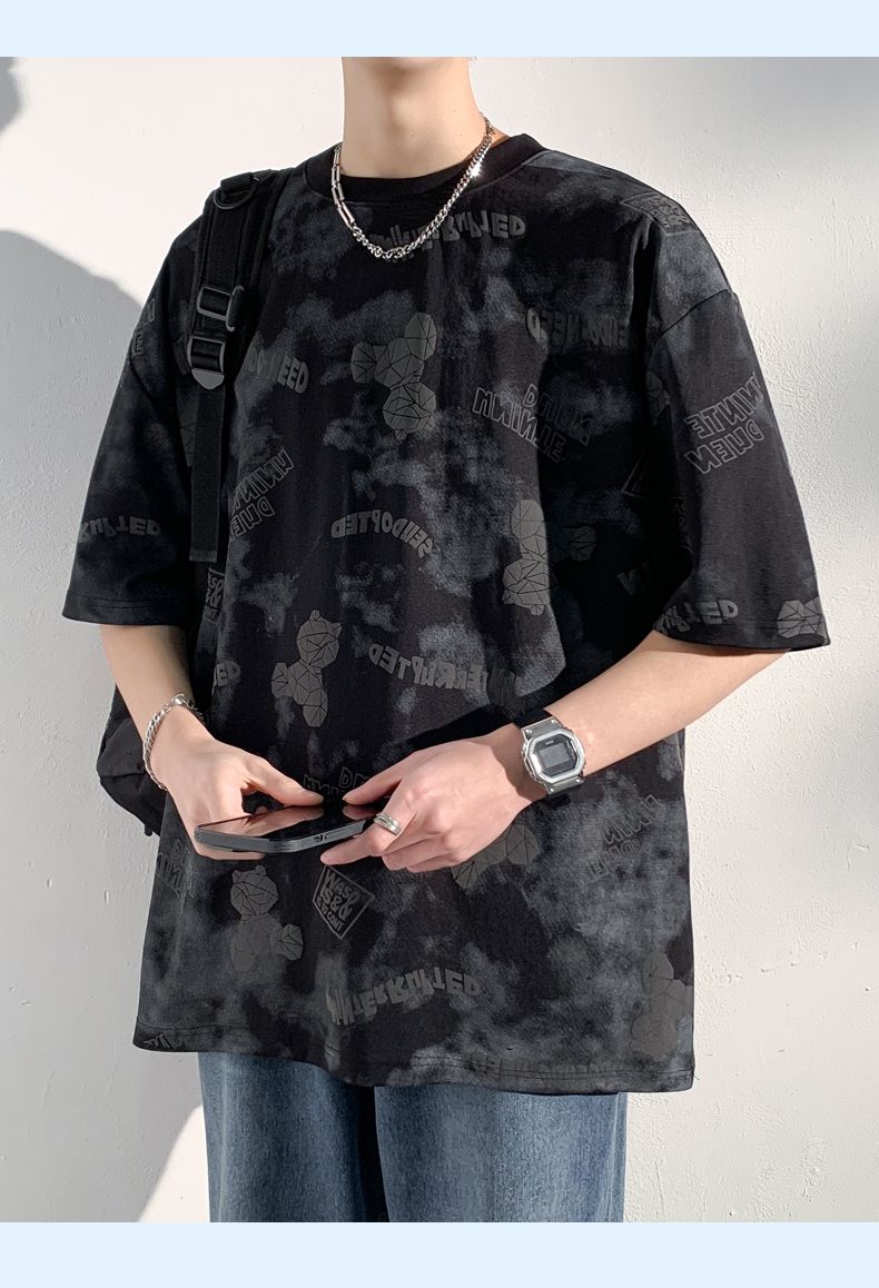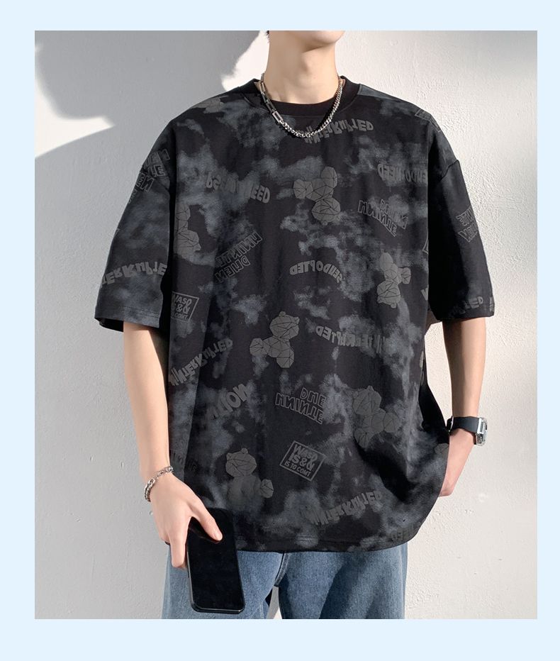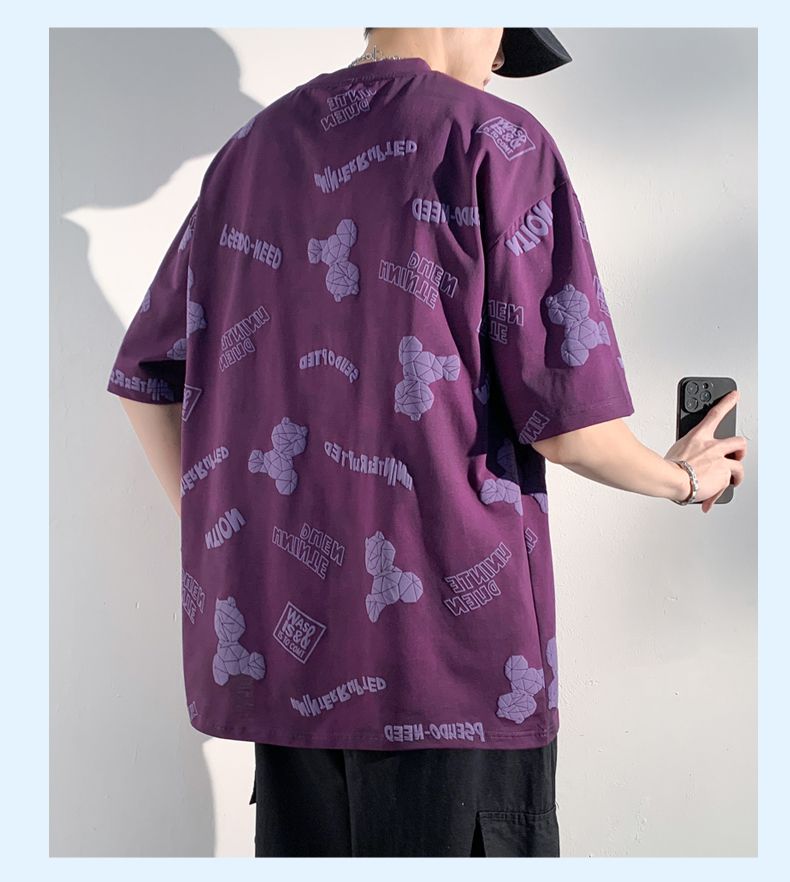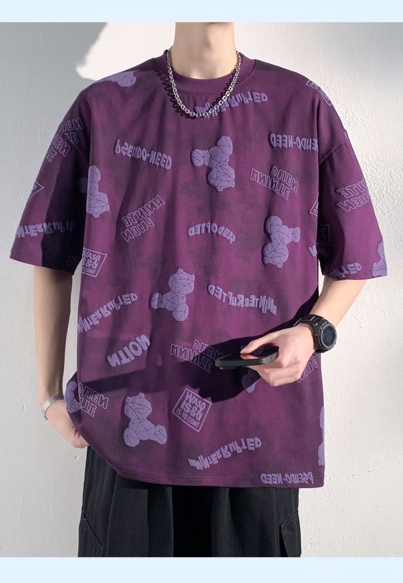 型煜 夏季短袖男款宽松半袖体恤美式小熊印花T恤男