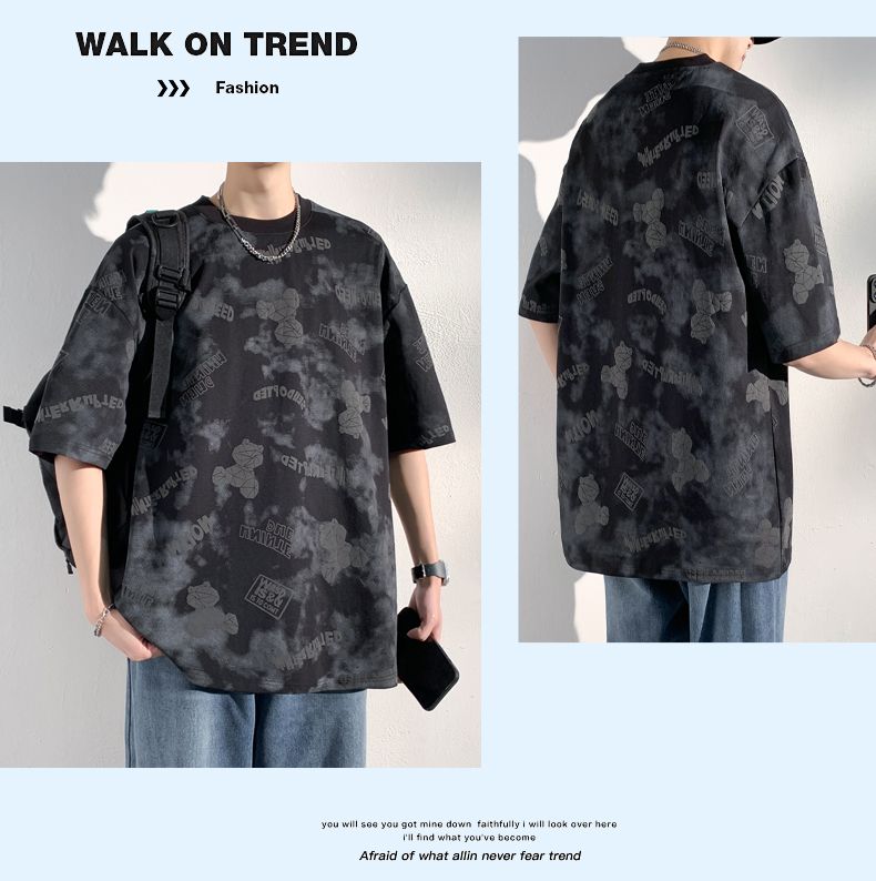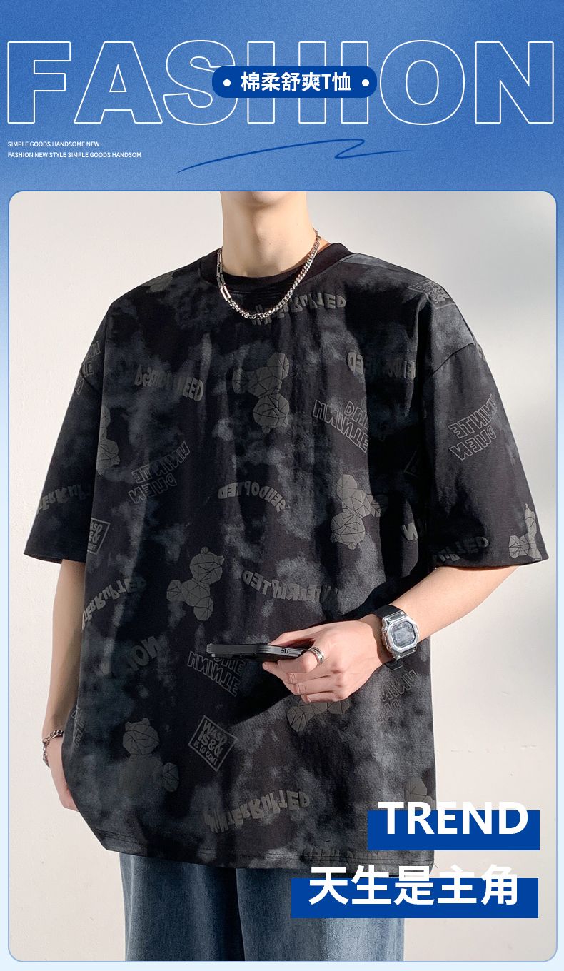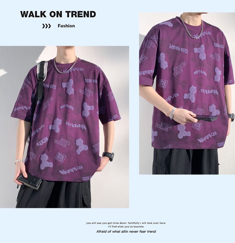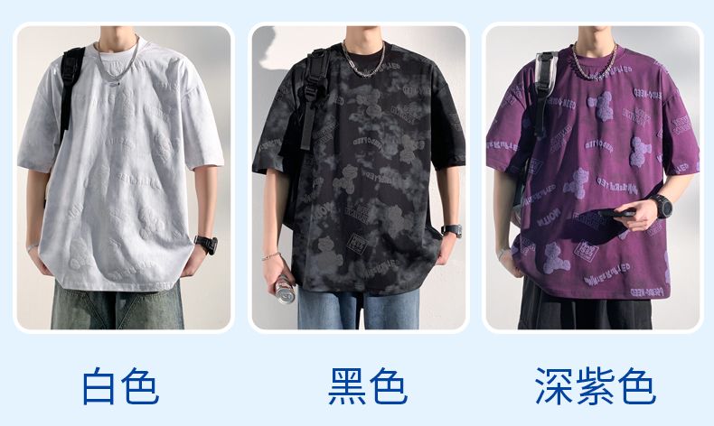 商品名称:型煜 夏季短袖男款宽松半袖体恤美式小熊印花T恤男