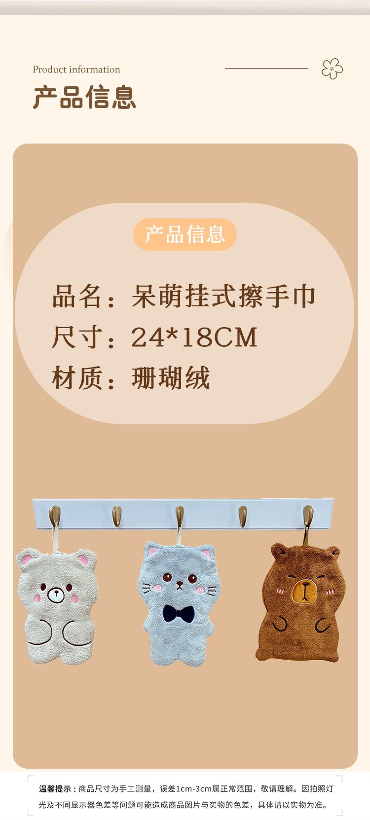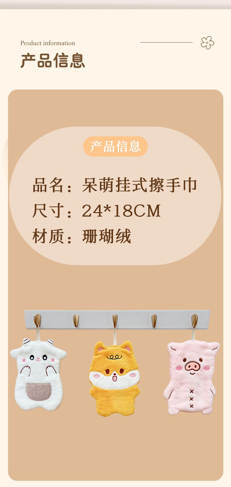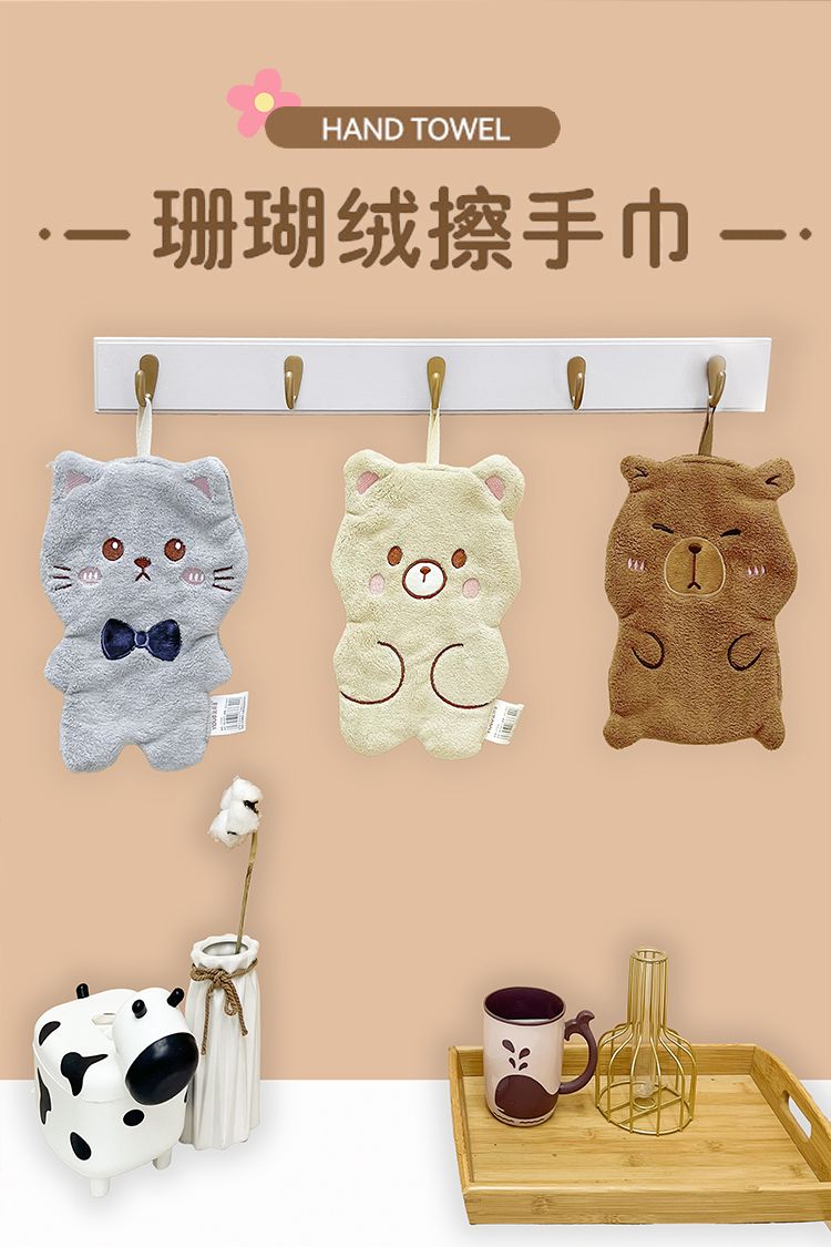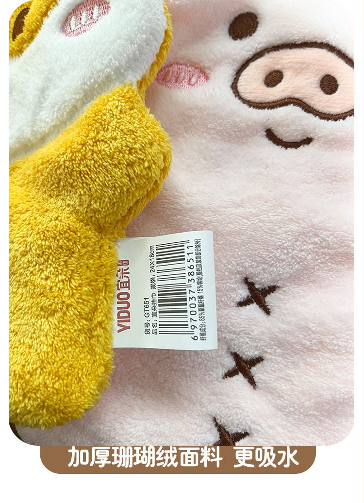 商品名称:宜朵(YIDUO)可爱儿童挂巾不掉毛柔软珊瑚绒吸水擦手毛巾