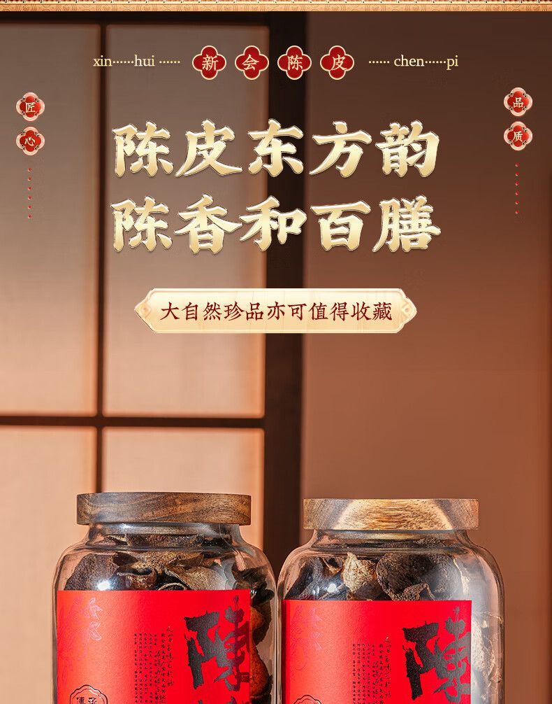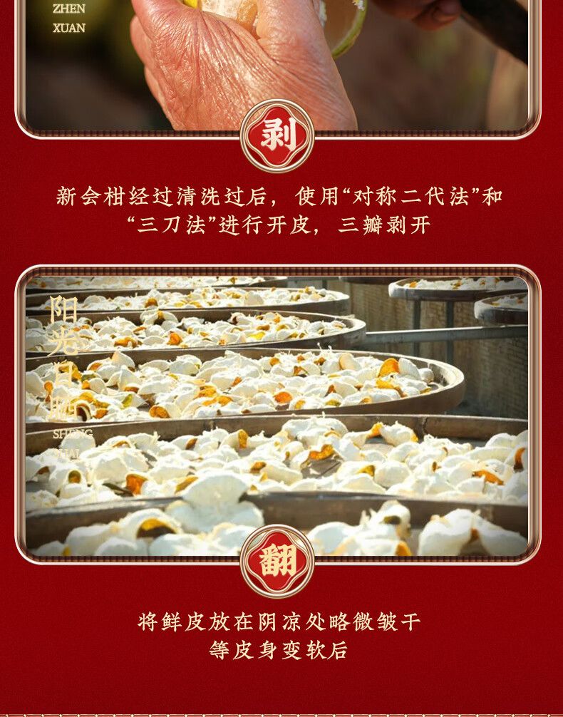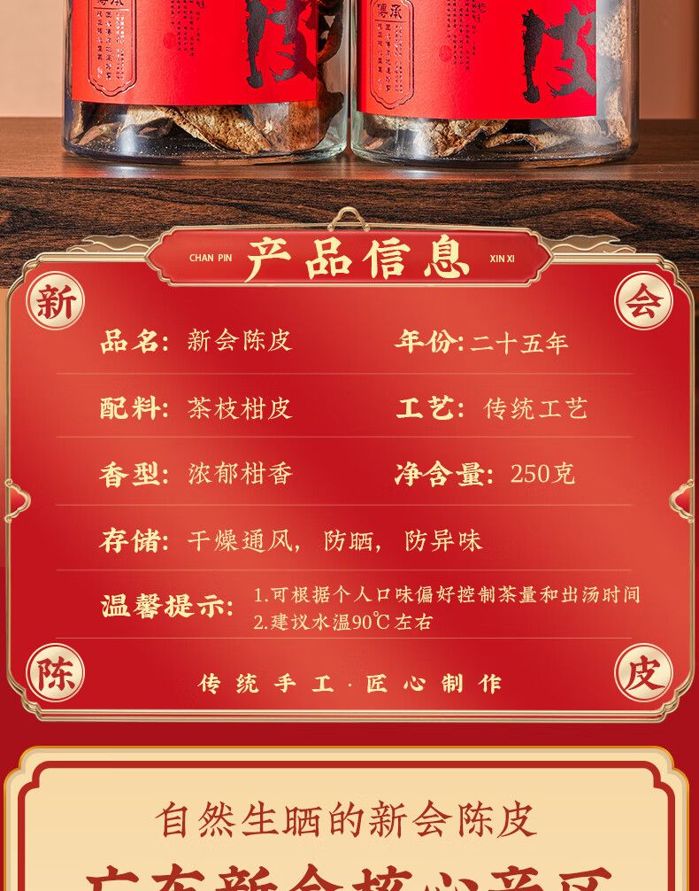 商品名称:杰盈新会陈皮二十五年天马圈枝干仓陈皮礼盒装250g送礼好物