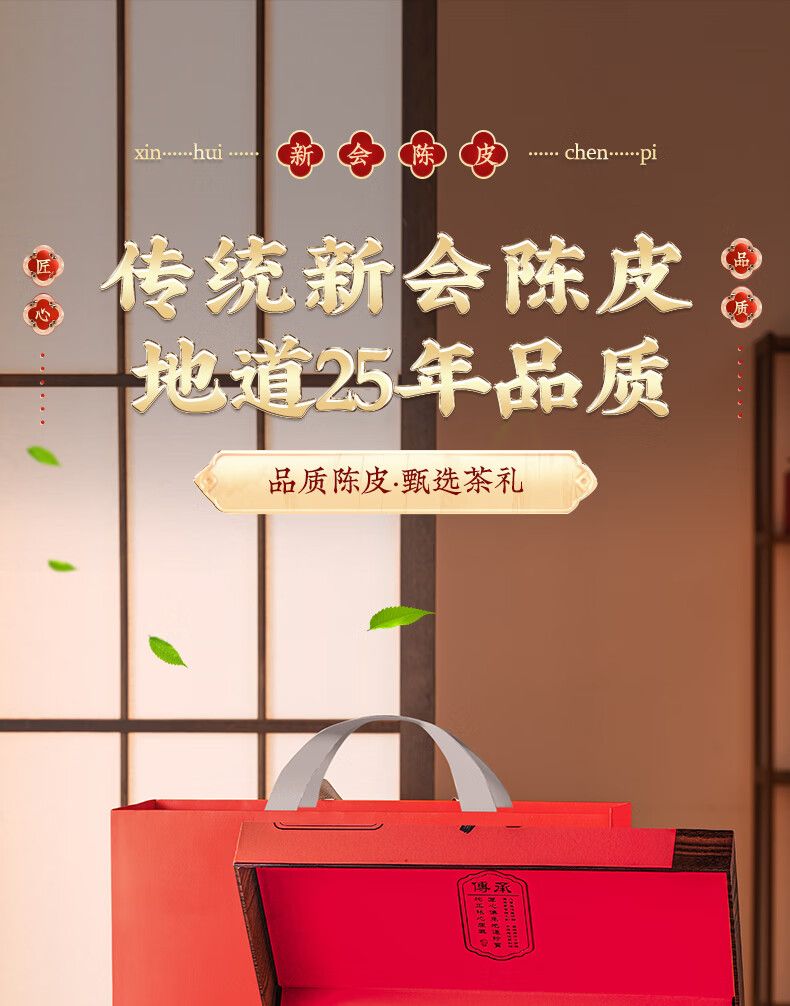 杰盈新会陈皮二十五年天马圈枝干仓陈皮礼盒装250g送礼好物